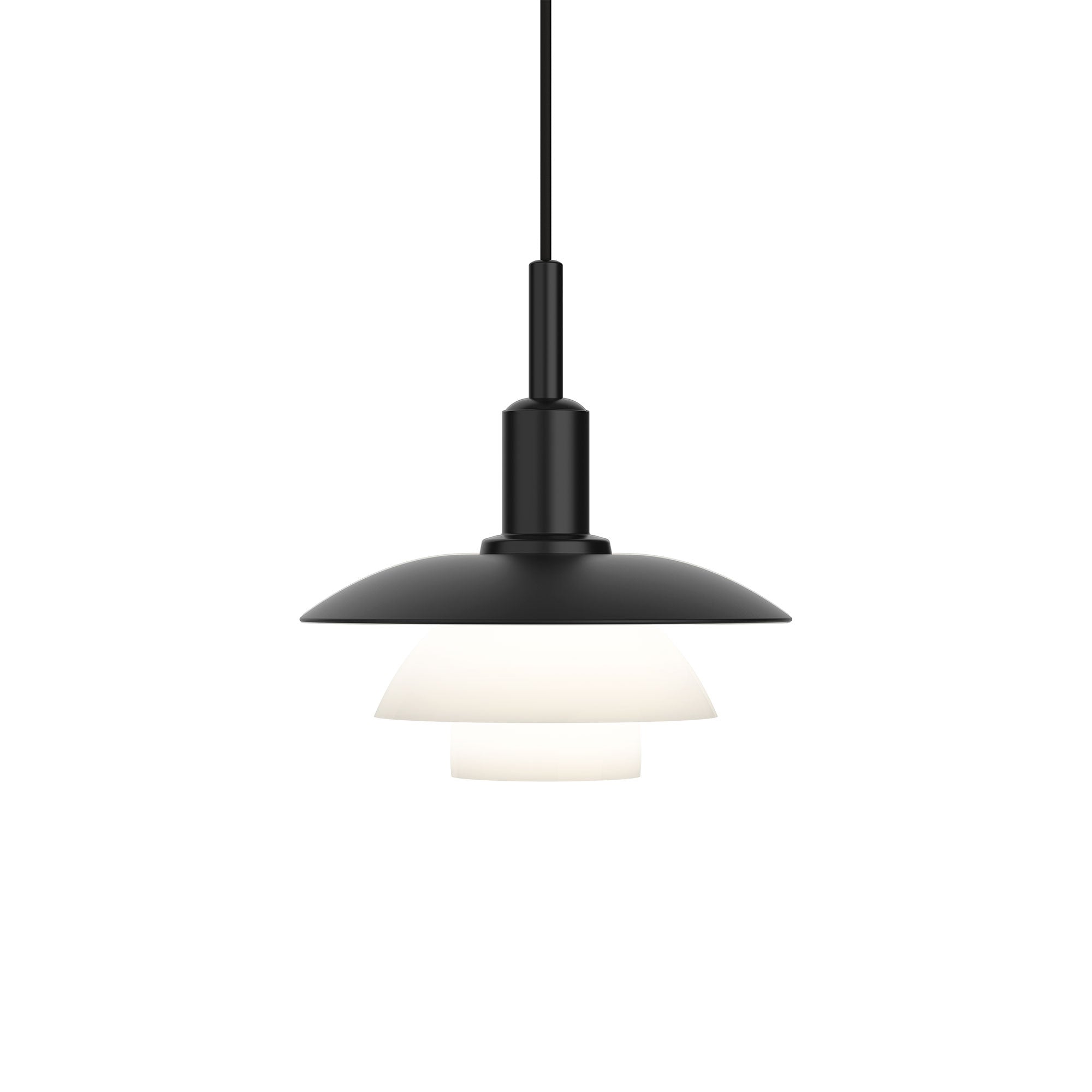 Poul Henningsen designed hundreds of lamps based on the three-shade-system he developed in 1926, enabling unequalled lighting quality for all types of needs. Many of his lamp designs include a number that refers to the shade sizes of each fixture.The PH 3/3 is described as a ‘whole’ sized pendant, characterised by its appealing compact semblance with the top shade of approximately 30 cm corresponding with the middle and lower shade in the proportions of 3:2:1.