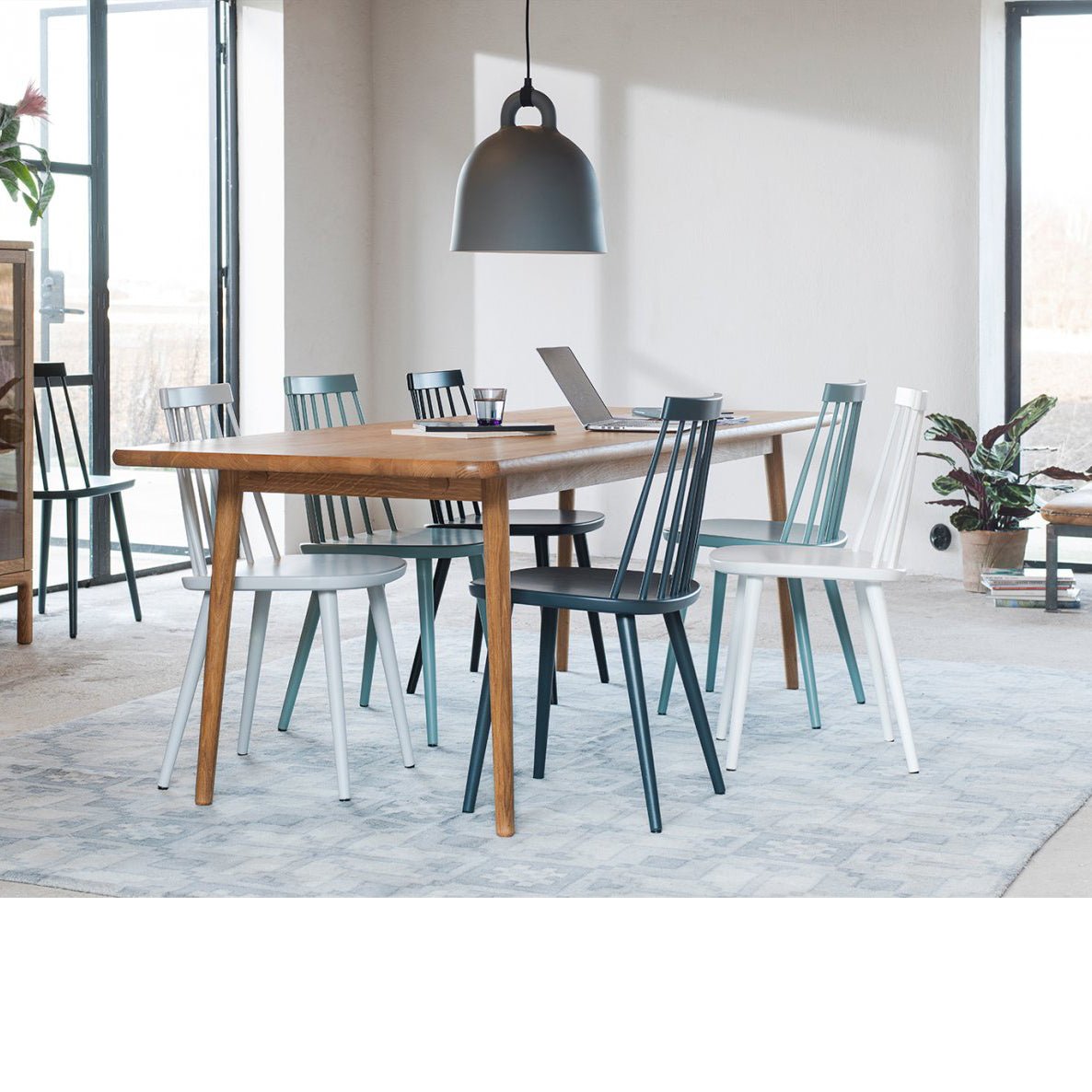 Pinnockio is made of solid birch and has stable legs that are screwed into the seat. The neat impression is enhanced by the seven back pins that taper together in the solid top piece. It is a chair that, due to its design language, fits many types of tables.