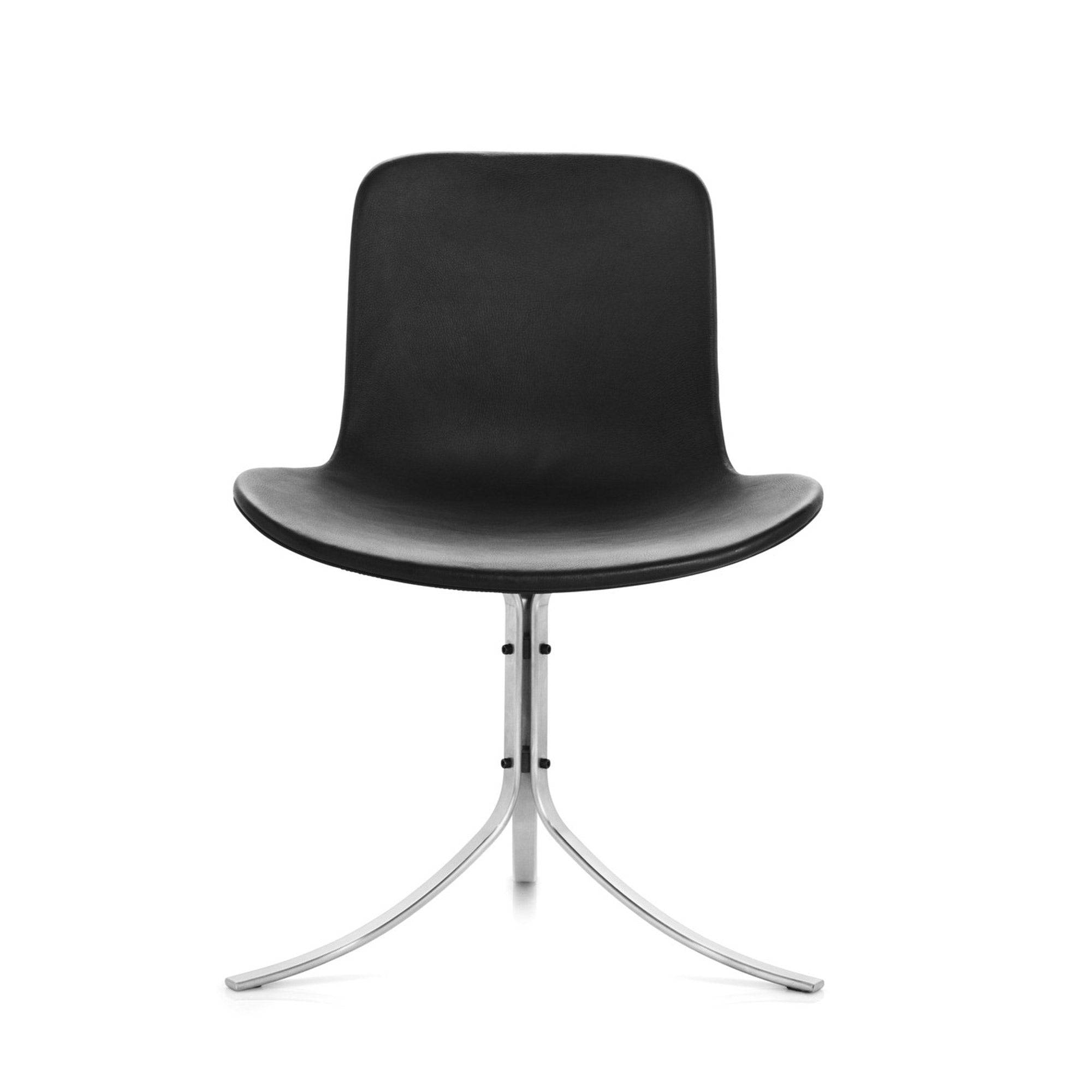 The PK9 chair is fully upholstered in a limited selection of leather, the base is made of satin brushed stainless steel.