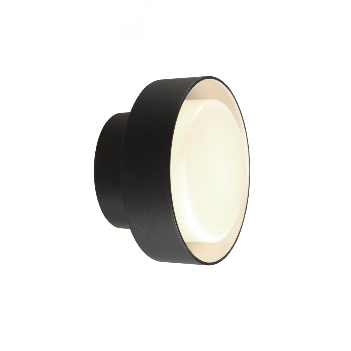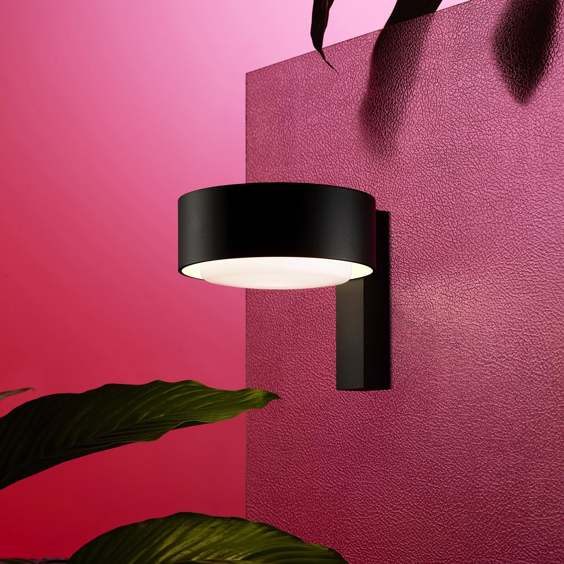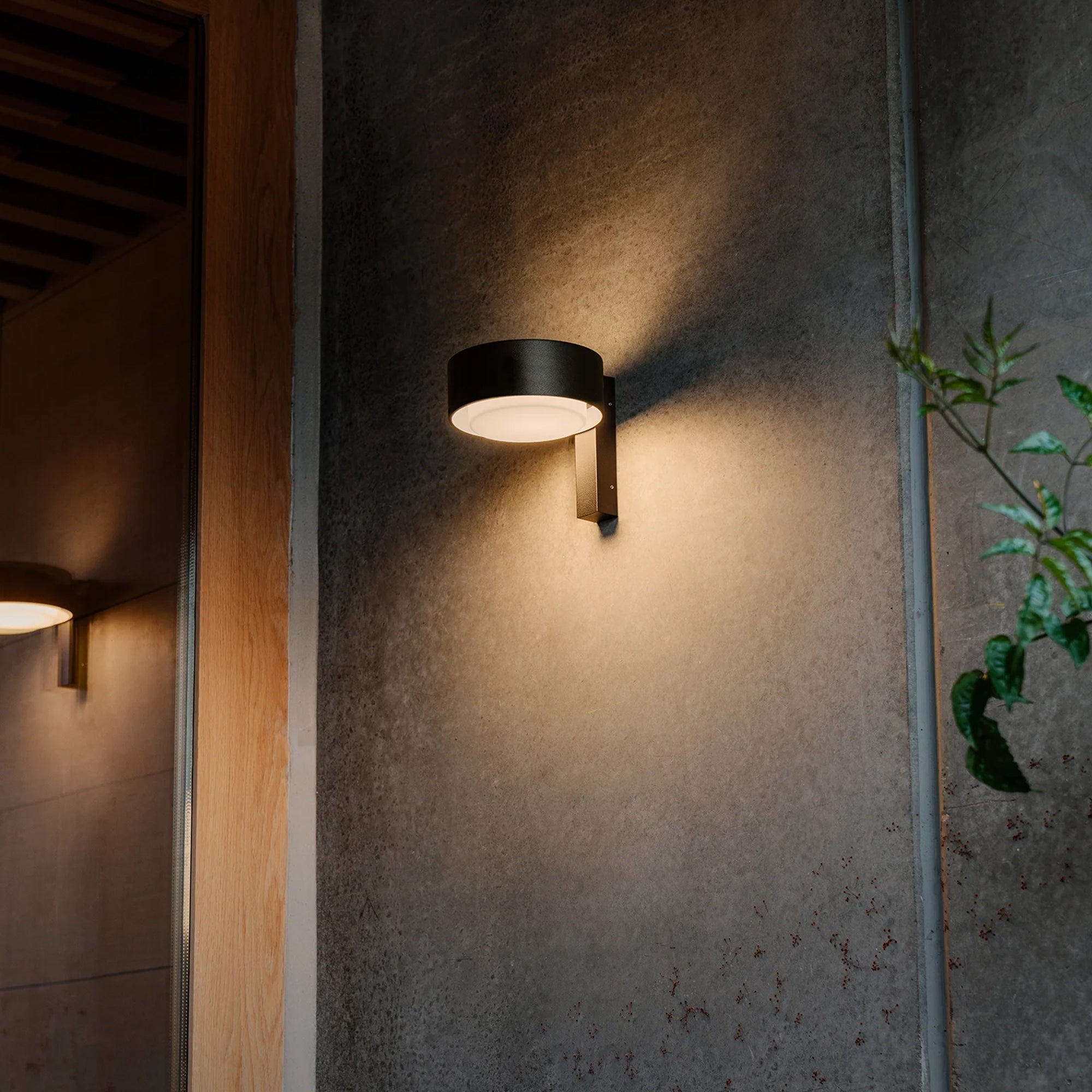 Expanding its reach into outdoor spaces, the Plaff-on! collection is changing its approach to lighting, and is now available in an outdoor wall version —16 cm in diameter — with a perpendicular orientation. With the light cast mainly downwards, this new version is perfect for illuminating paths and outdoor seating areas, while a luminous halo of light flows smoothly upward as well. As in the indoor versions, the white blown glass diffuser seems to float, detaching from the ring that envelops it. The Plaff-on! exudes simplicity and utility.