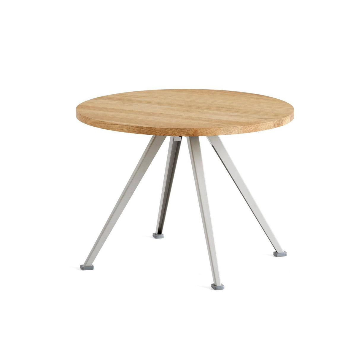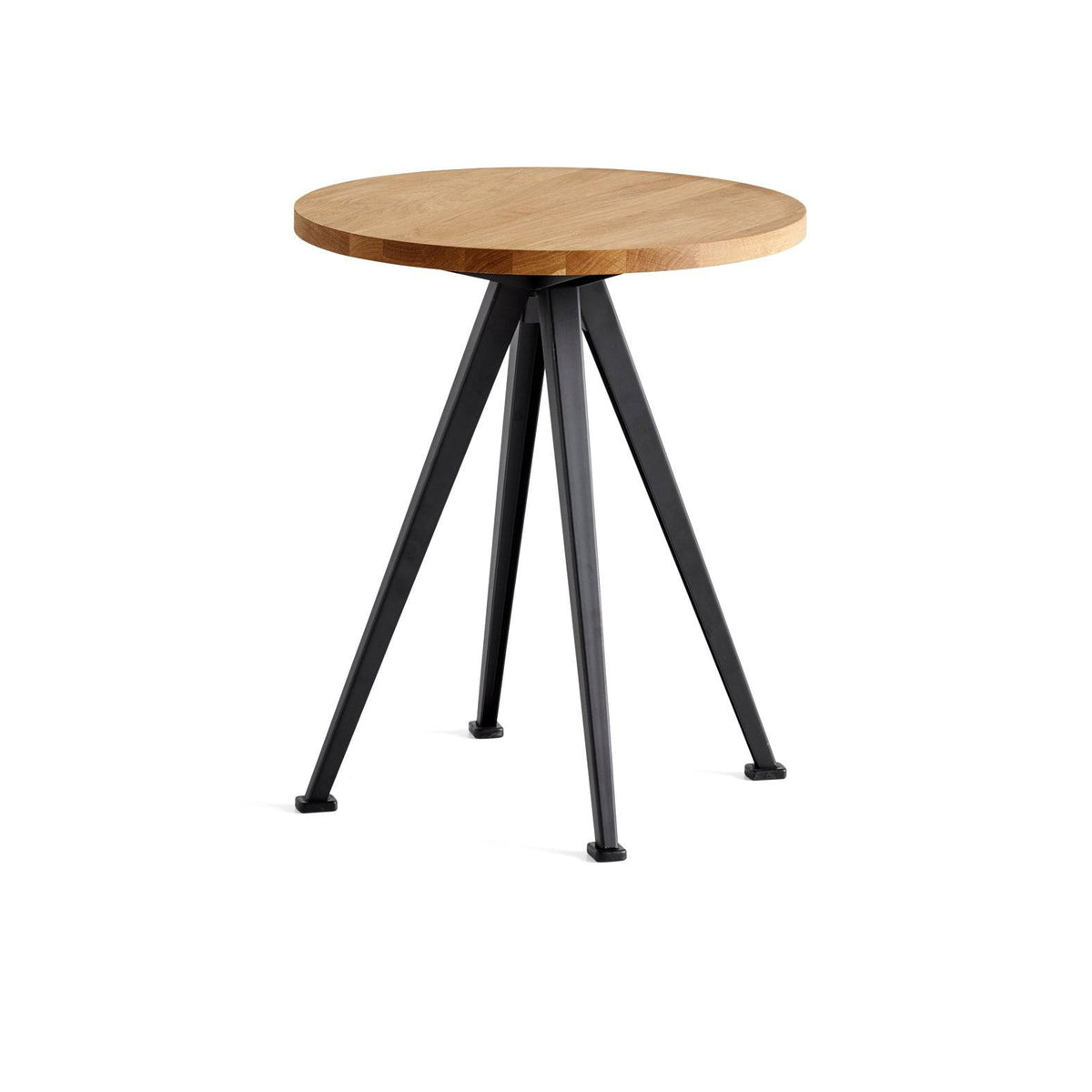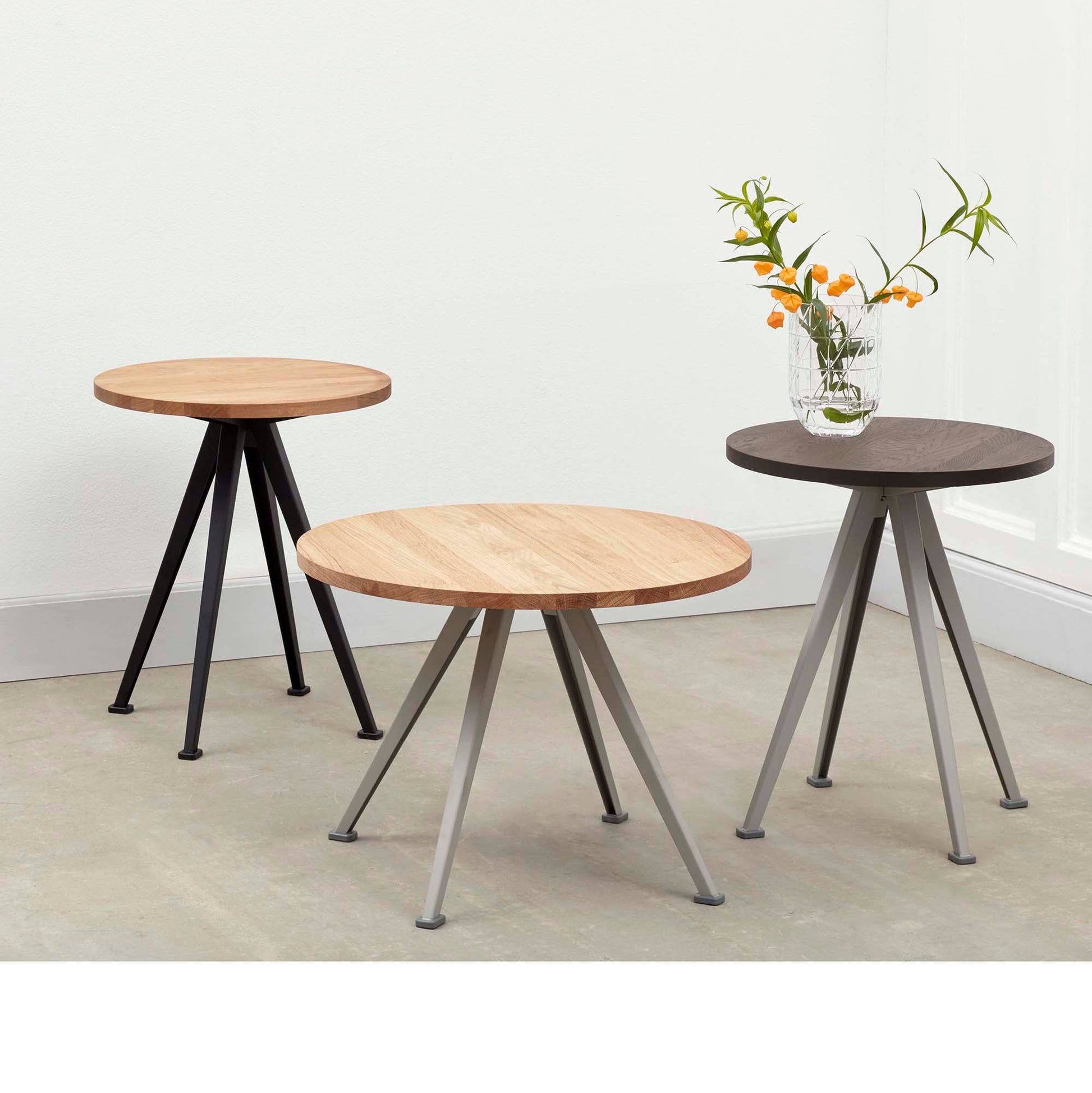 Designed to be functional, light and strong, the Pyramid Coffee Table features a round oak tabletop and thin sheet-steel legs that slant outwards, creating a functional and uncluttered expression.