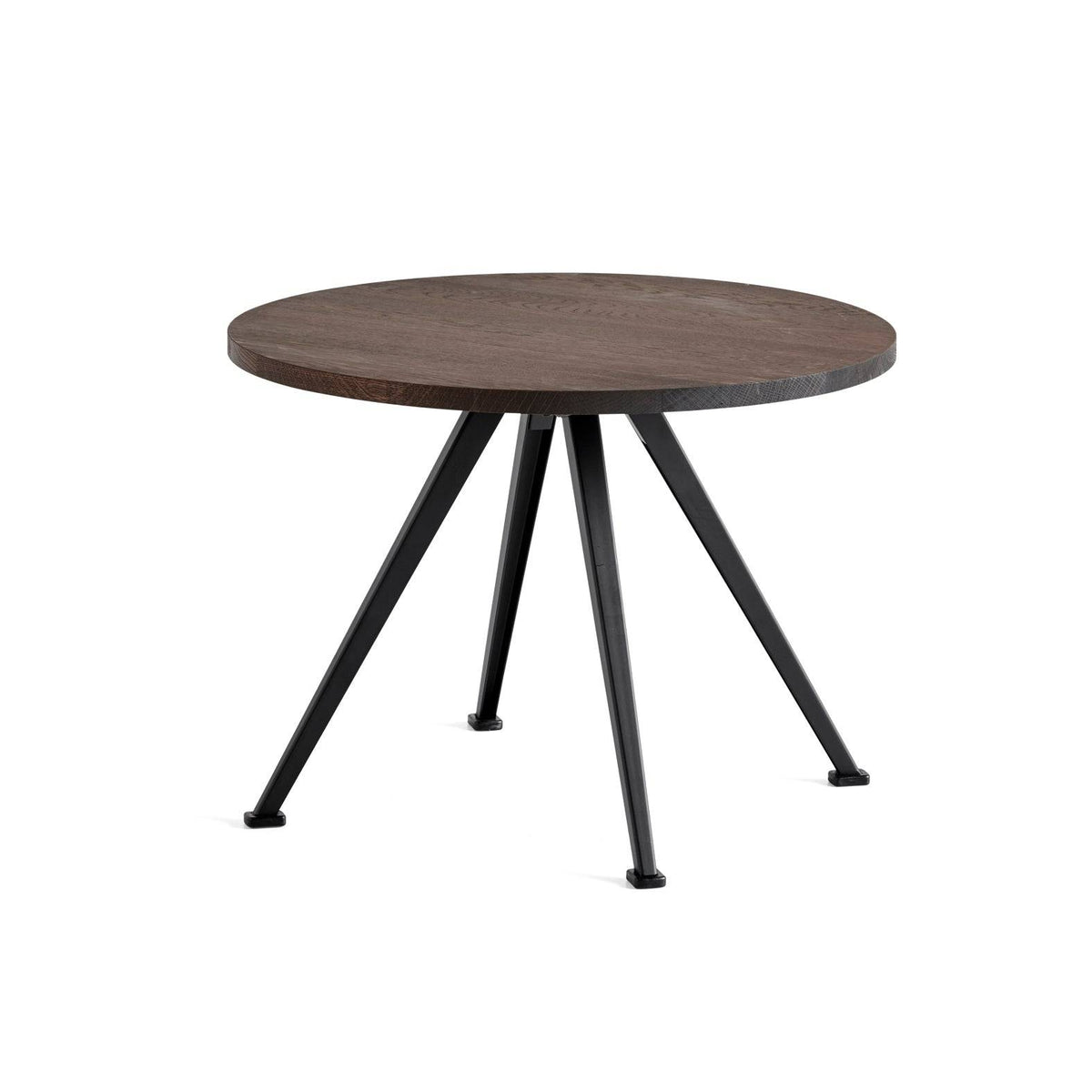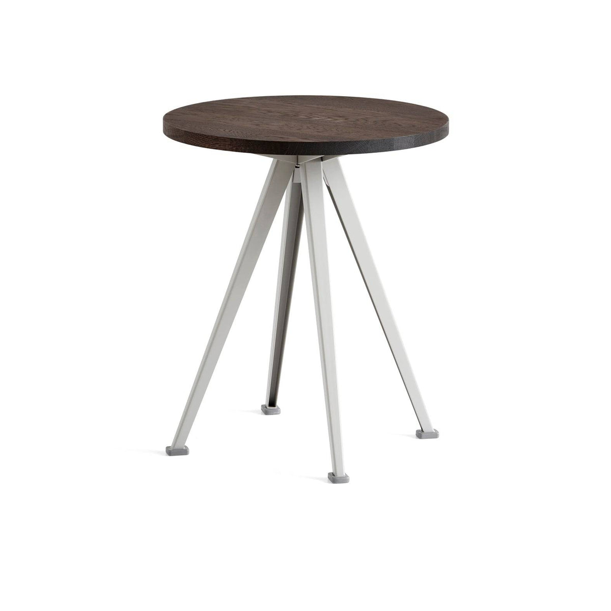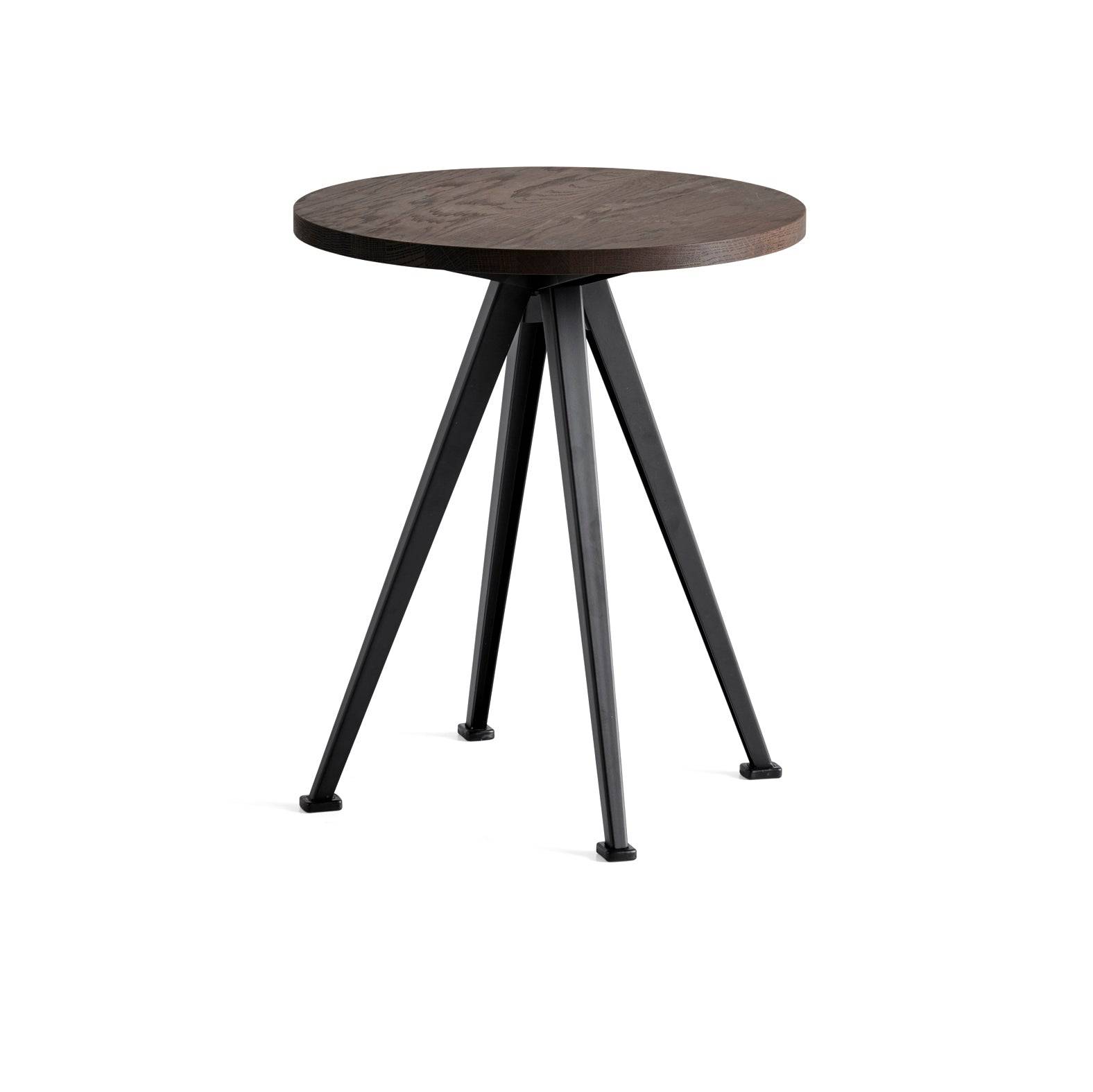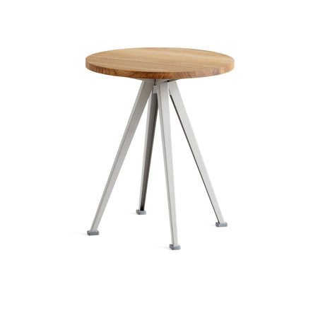 Designed to be functional, light and strong, the Pyramid Coffee Table features a round oak tabletop and thin sheet-steel legs that slant outwards, creating a functional and uncluttered expression.