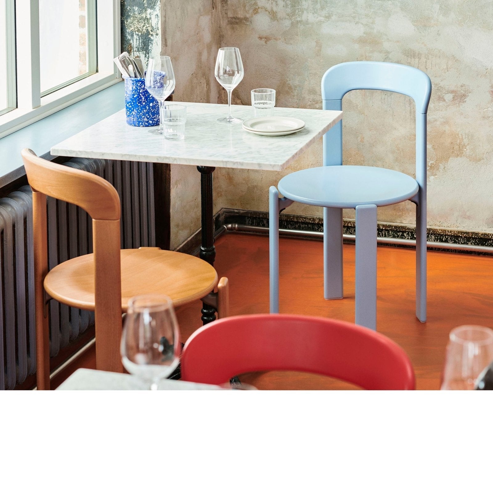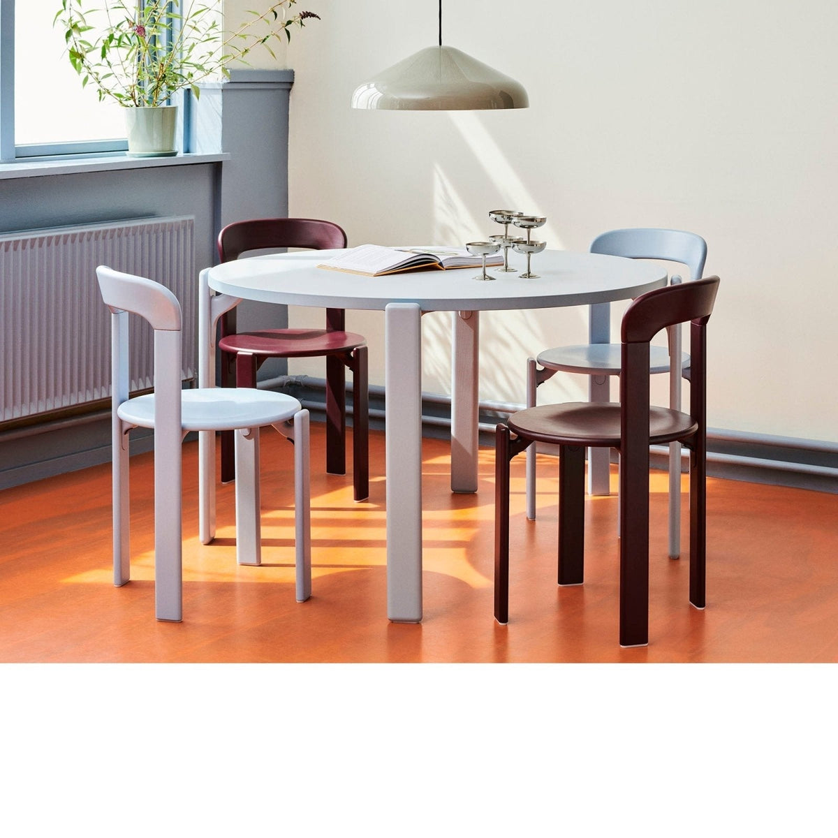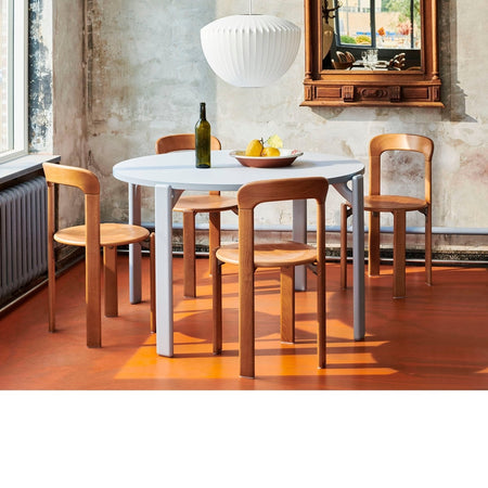 Made in solid wood, it is available in original colours, as well as new tones and upholstered seat options selected by HAY.
