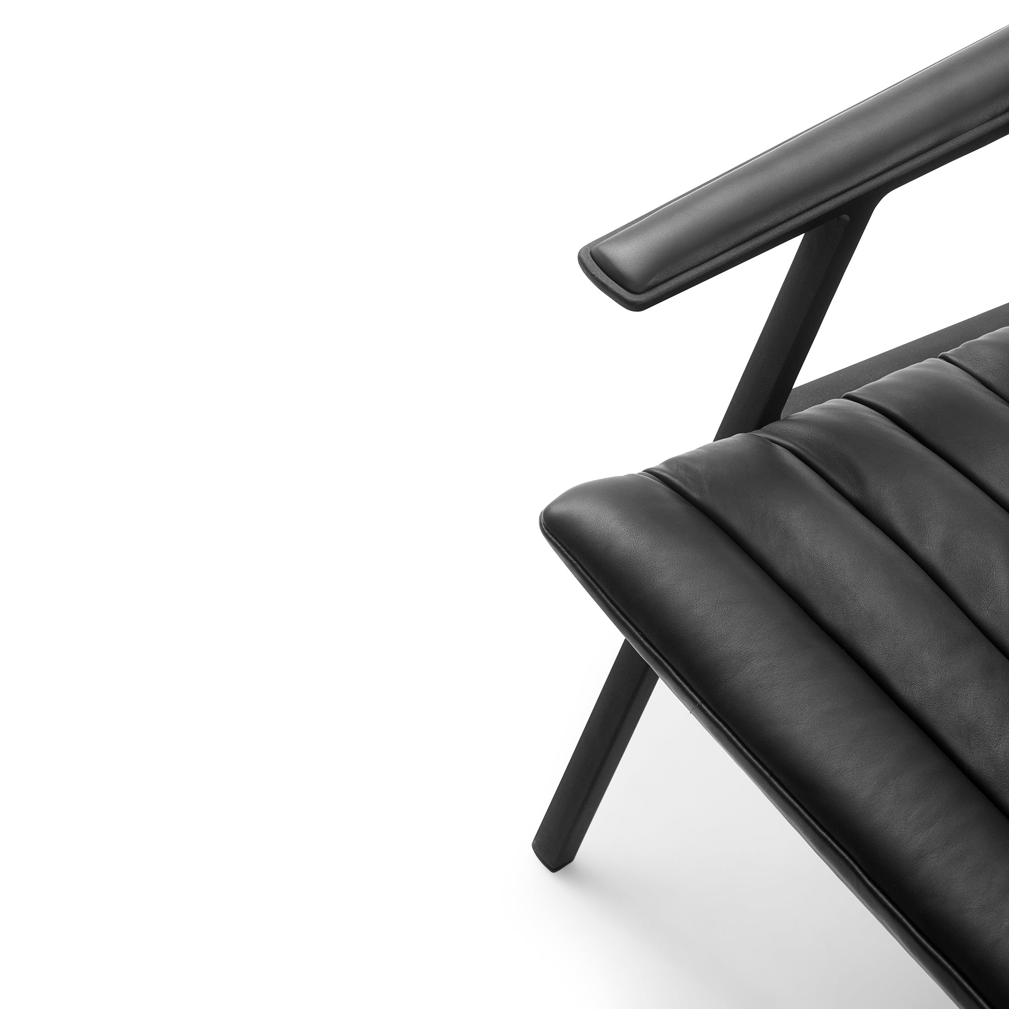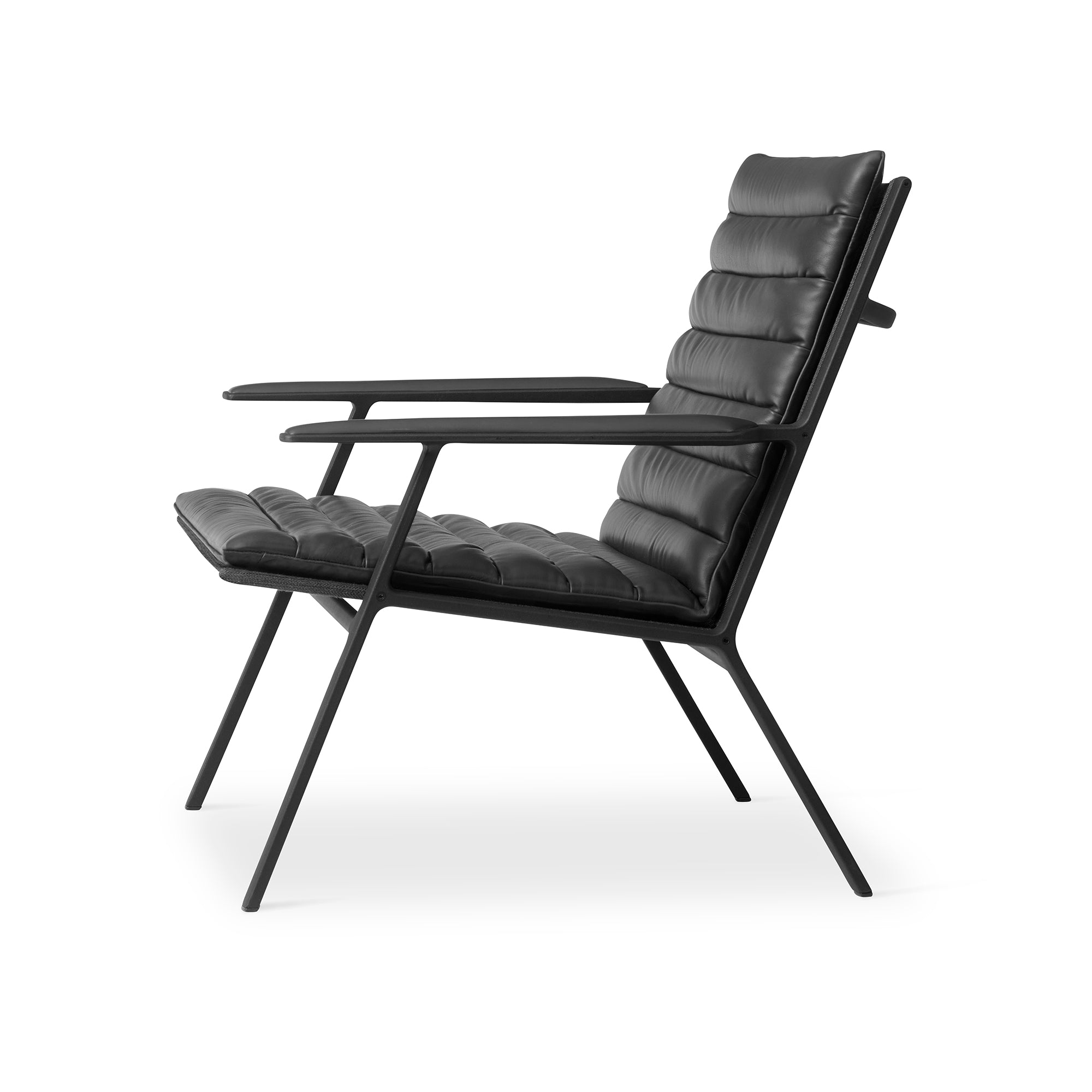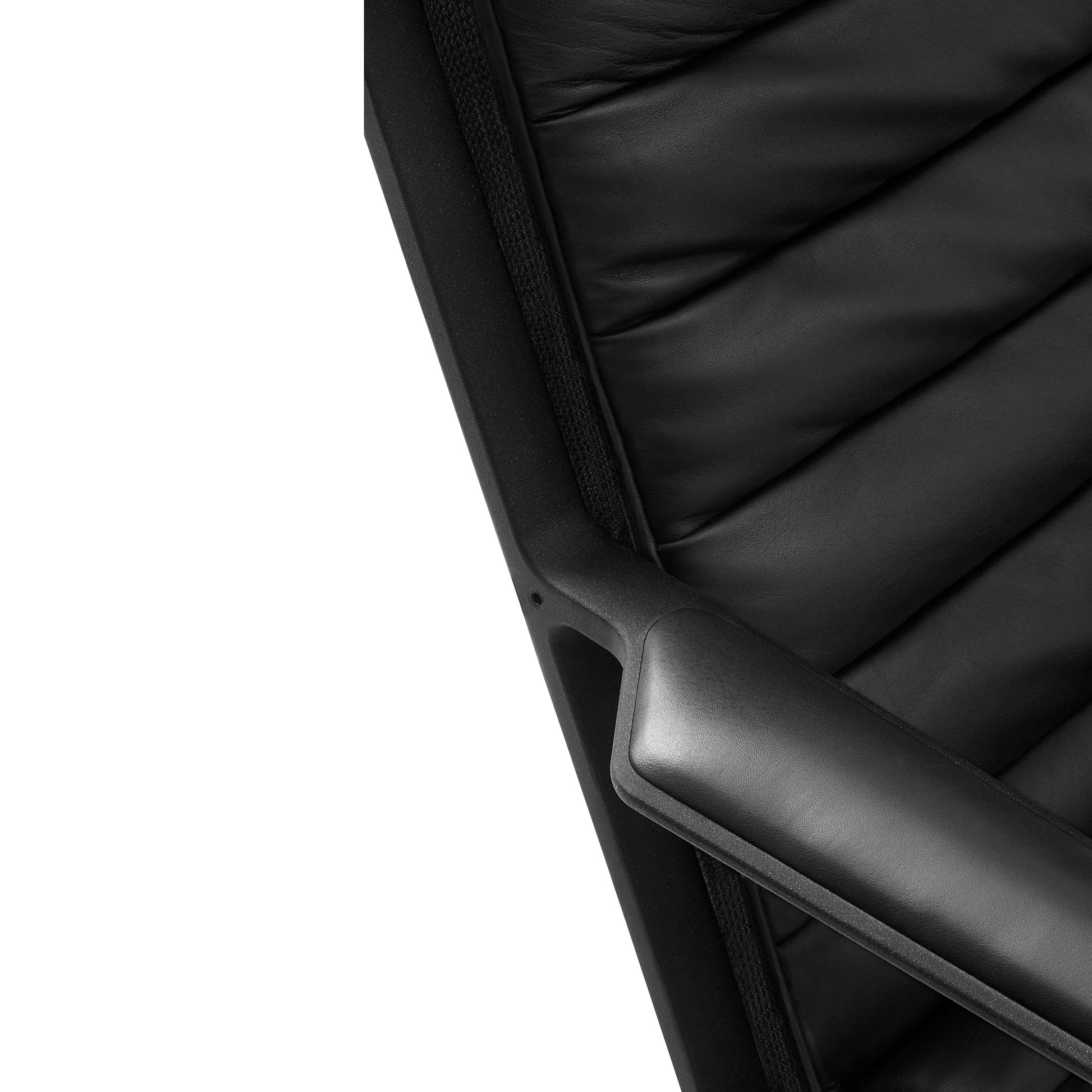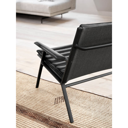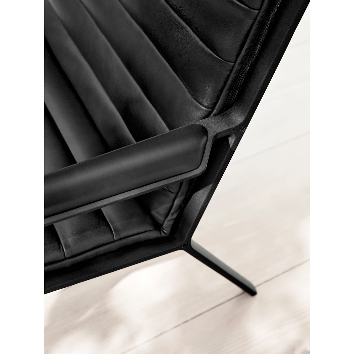 The Vipp Lounge Chair is a refined seating solution designed for the living room or lounge area. Built on a sturdy powder-coated aluminium frame with padded armrests, it features a slightly angled seat and backrest for comfort. Rounded edges and smooth dark brown leather upholstery soften the industrial character of its die-cast construction. Originally created for the Vipp Shelter — the brand’s prefabricated architectural retreat — the chair reflects its monochrome aesthetic through solid materials and dark-toned finishes, offering both durability and elegance.