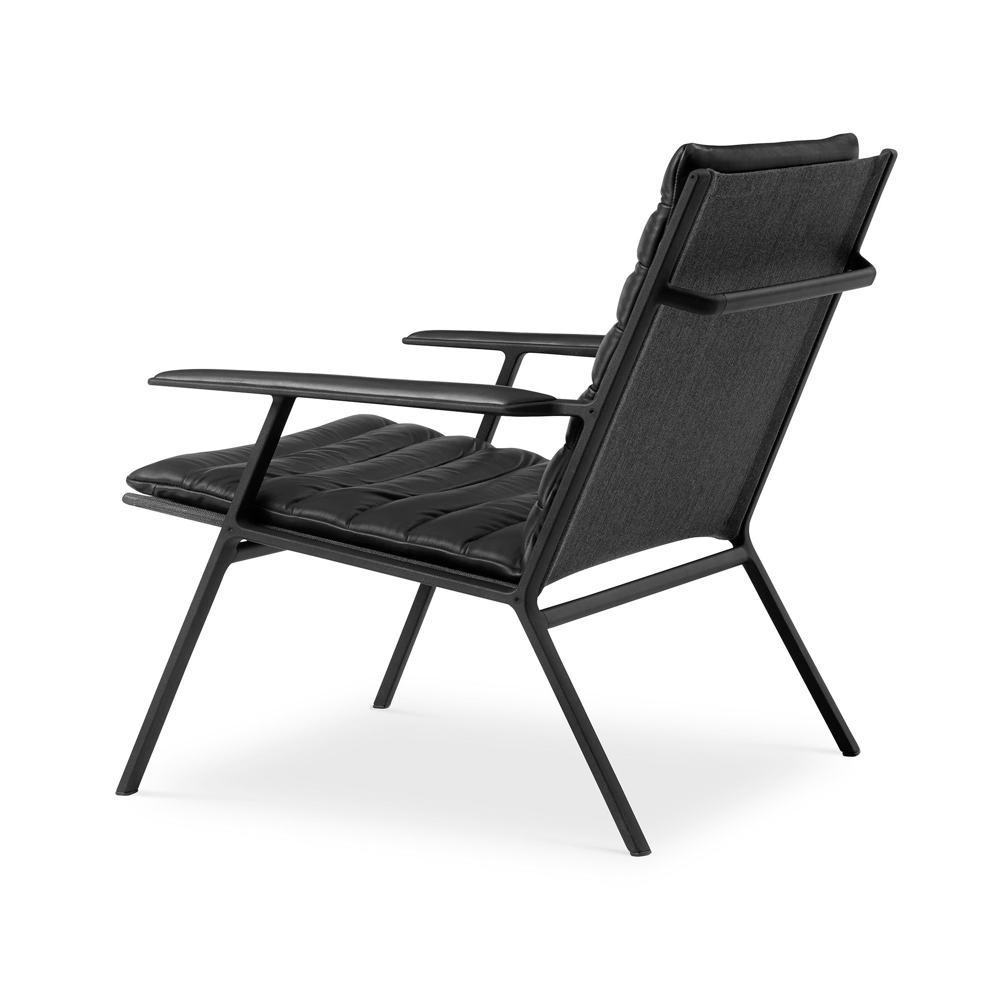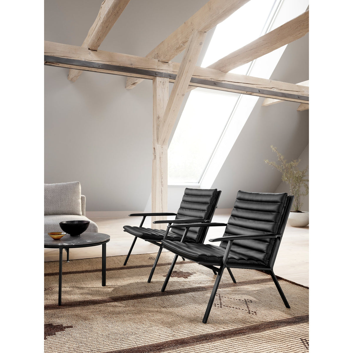 Pair the Vipp Lounge Chair with the Vipp Coffee Tables or the Vipp Shelter-inspired furniture for a cohesive architectural look. Its dark leather and aluminium frame make it particularly well-suited to monochrome or minimalist interiors.