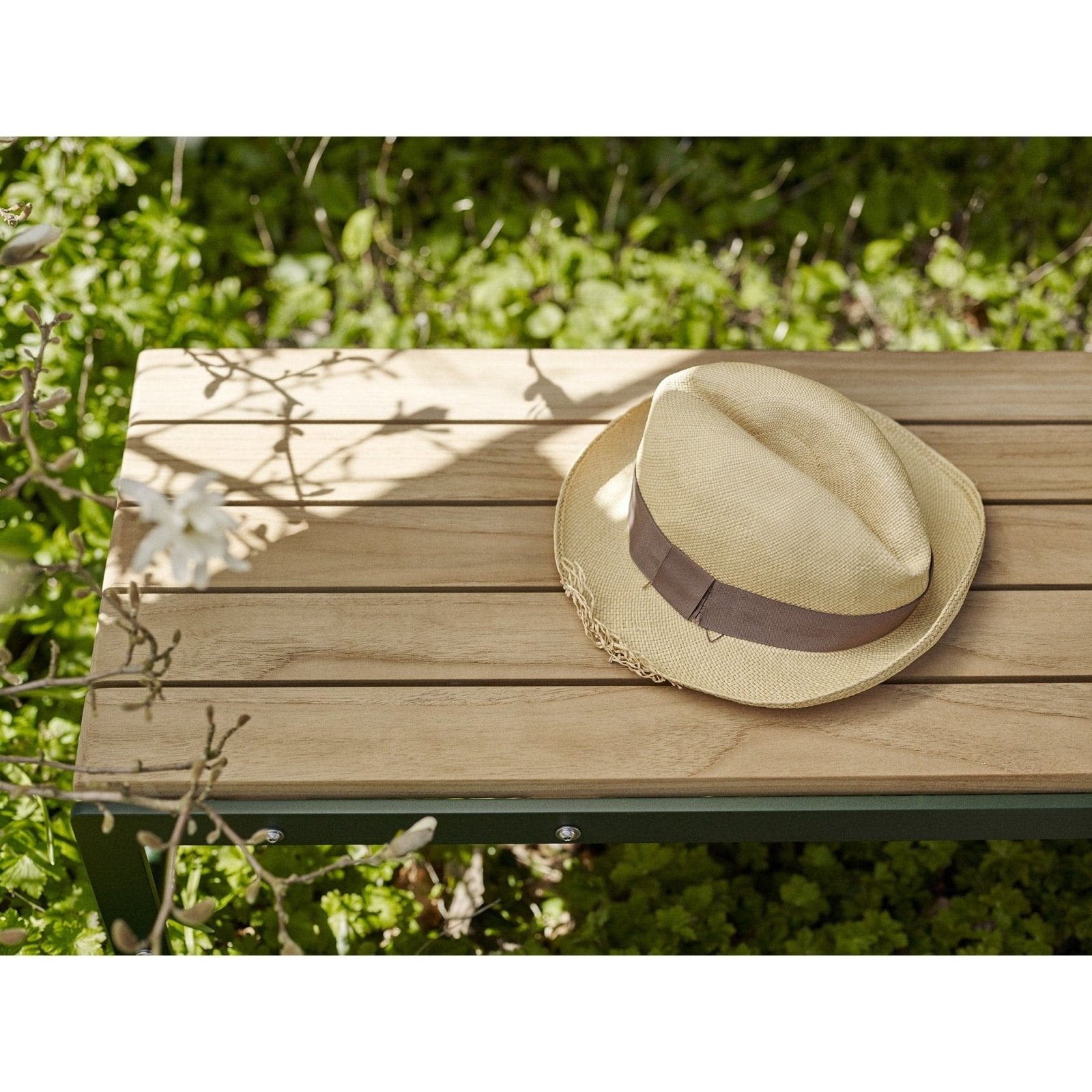 Materials: Untreated teak tabletop, powder-coated aluminium frame