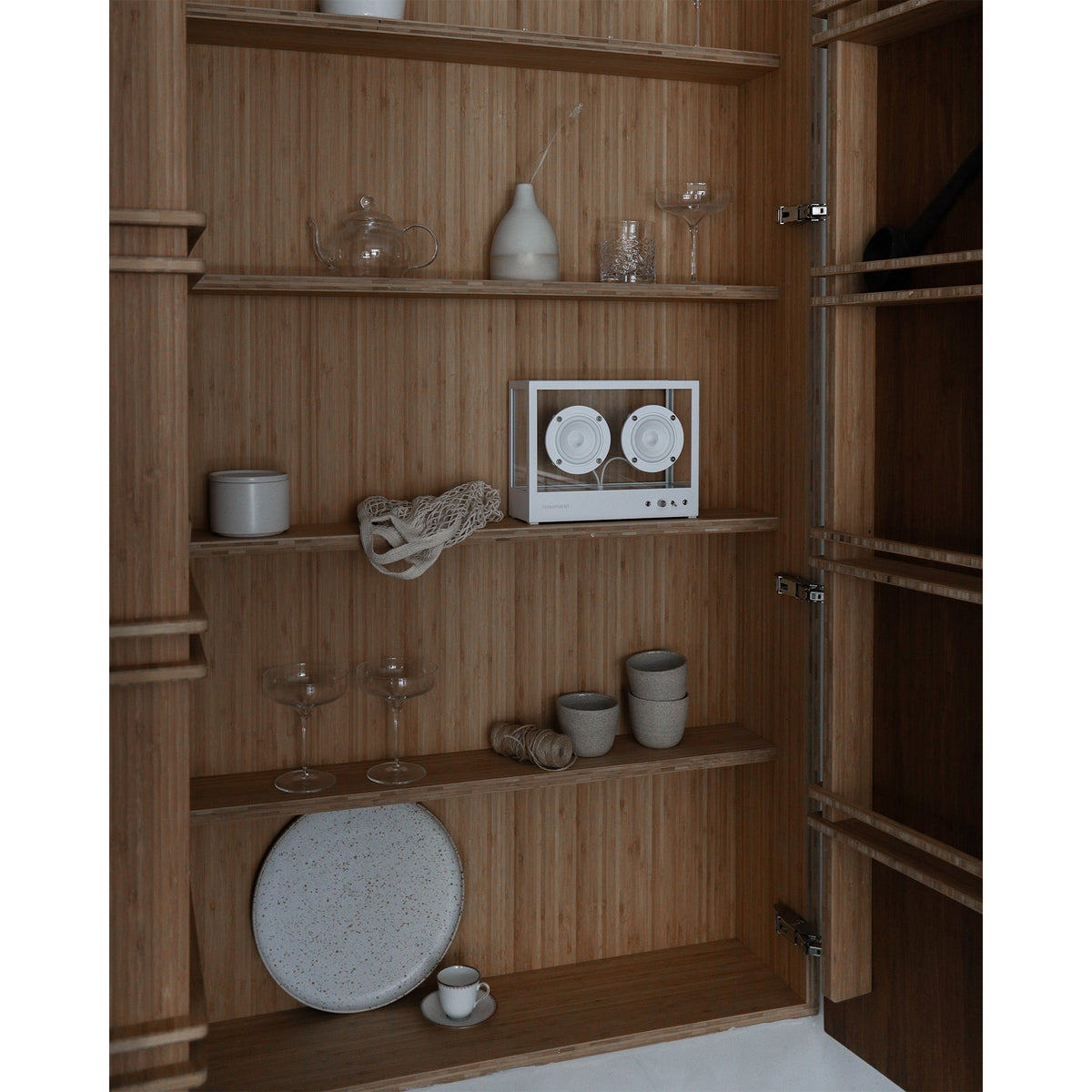 This loudspeaker is designed to last a lifetime in your home. The tempered glass blends naturally into any style, and the modular construction allows it to be upgraded with new tech over time.
