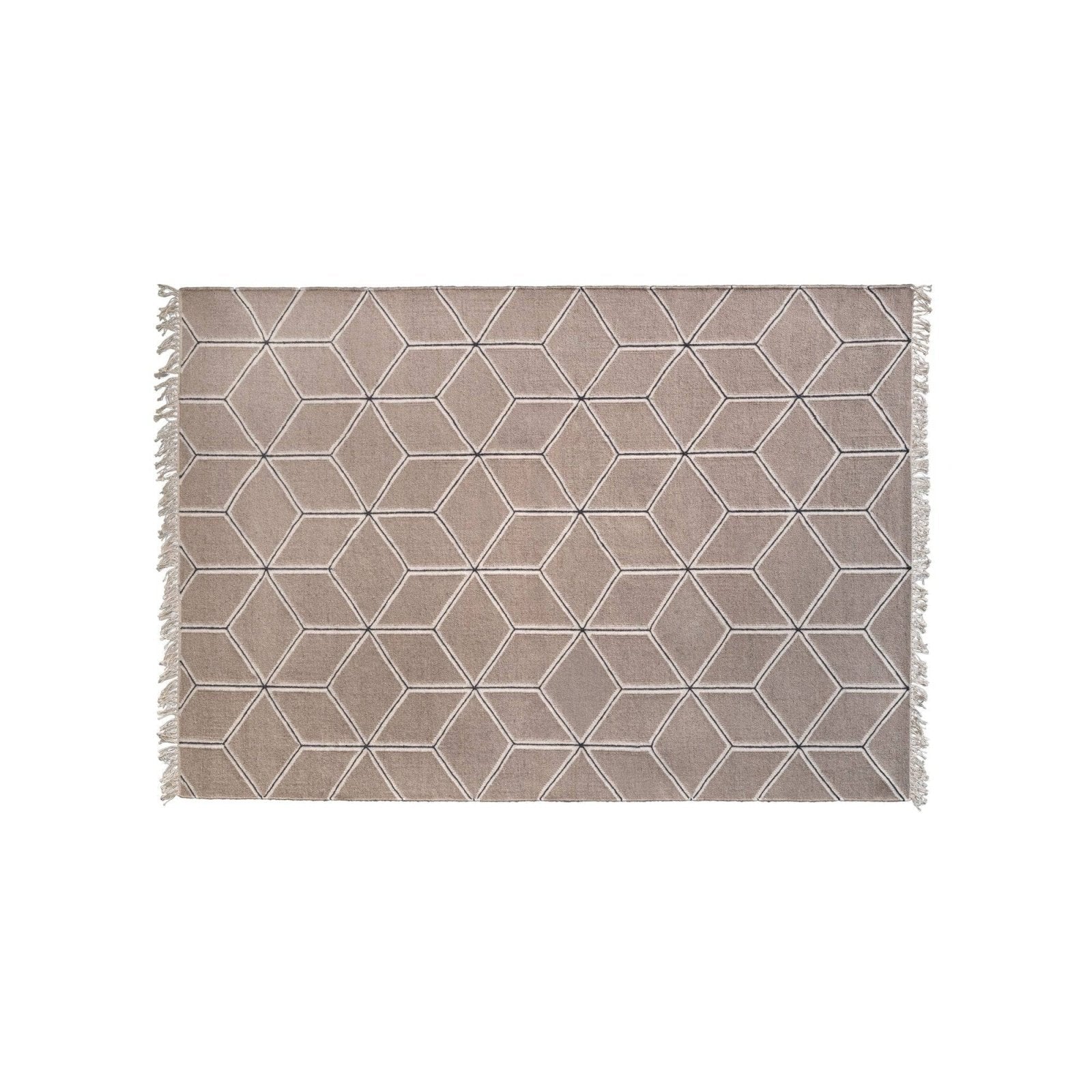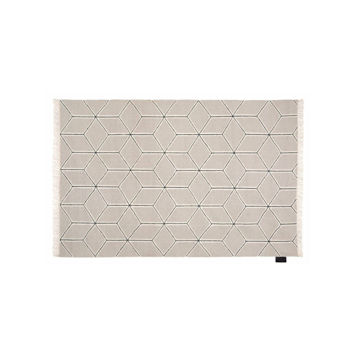 Hand woven carpet in NATURALS* New Zealand wool with stiched details by Emma Olbers for ASPLUND Collection. Emmas idea was to make a carpet of an old classic geometrical pattern, resembling harmonic Mediterranean tile patterns in soft colours.