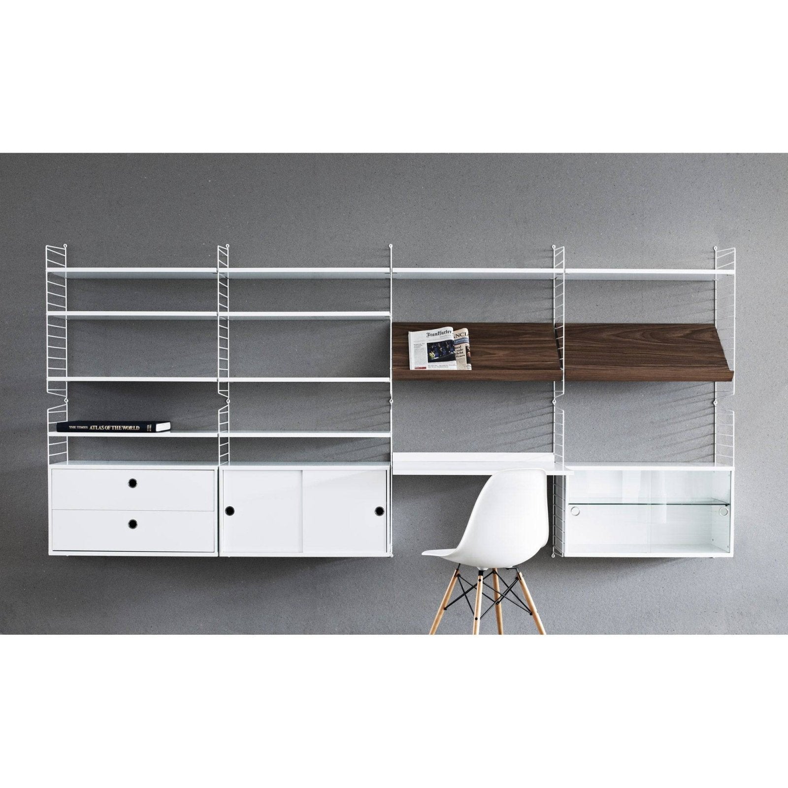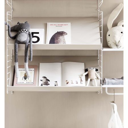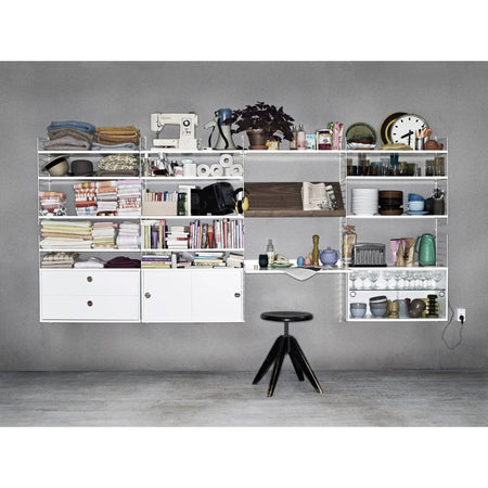 The Magazine Shelves in wood are available in two widths, 58 and 78 cm, and fit into 30 cm deep wire panels from String® System. The magazine shelves create a dynamic shelving combination where you have room to showcase your favourite books and magazines. Choose among different colours and wood types. Brackets are included in the packaging.