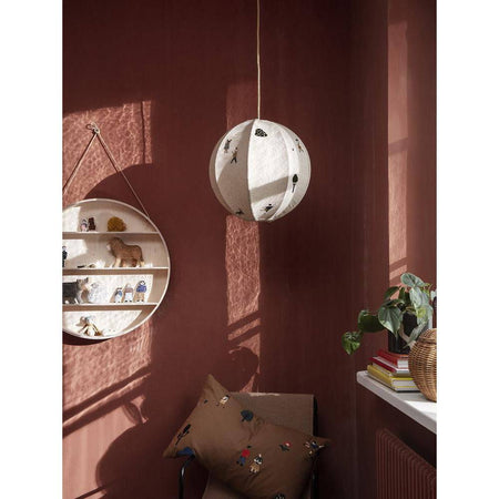 A modern take on traditional rice lamps, the Park Textile Pendant features scenes from a fun, free day in the park embroidered in vibrant colours onto a 100% cotton lampshade.