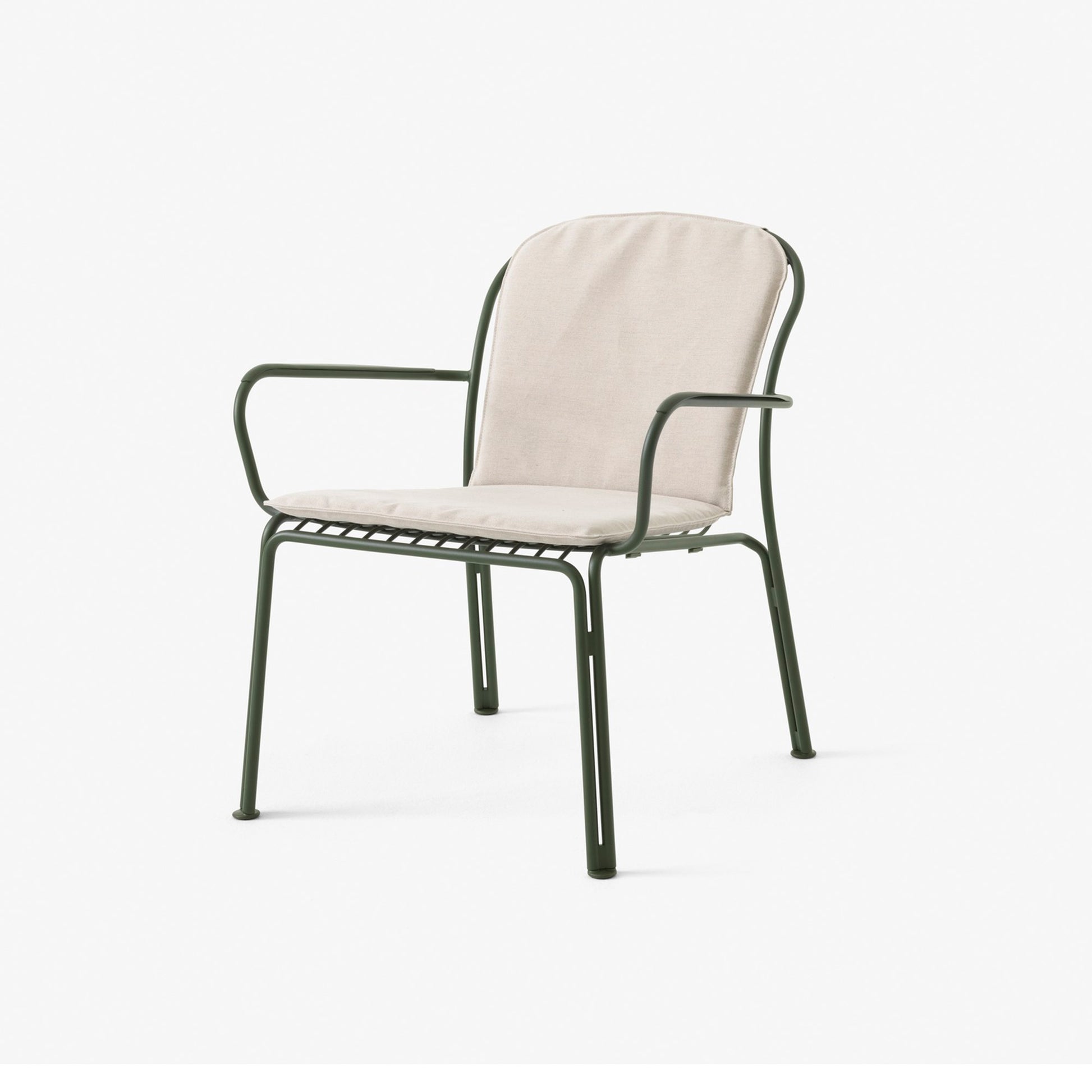 The Thorvald cushions and seat pads offer an additional layer of comfort to the outdoor collection. They can be chosen in Marquetry Bora which is certified with OEKO Tex® 100 and Greenguard Gold, as well as Heritage Papyrus and Heritage Char, which are both made with 50% recycled content and is also certified with Greenguard Gold.