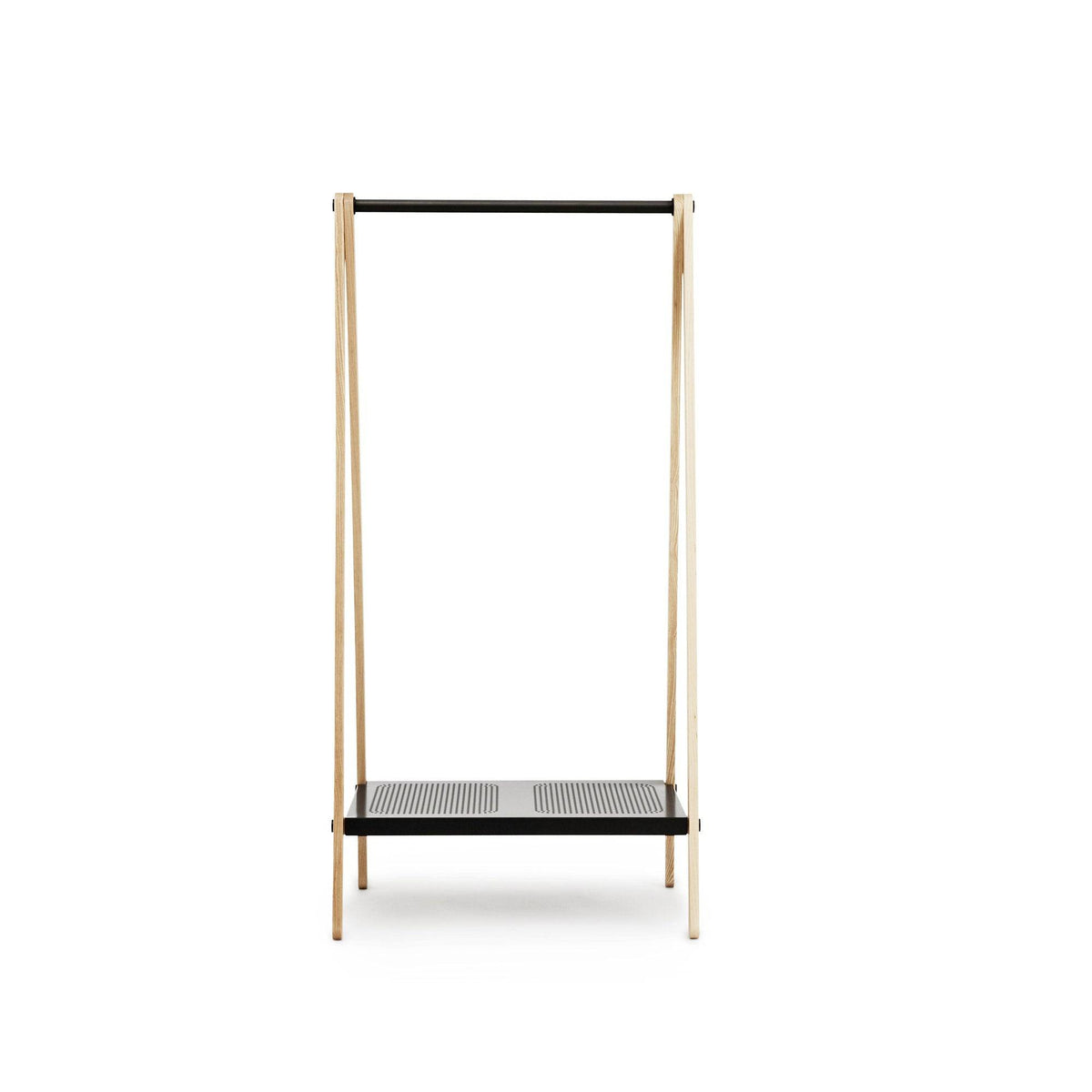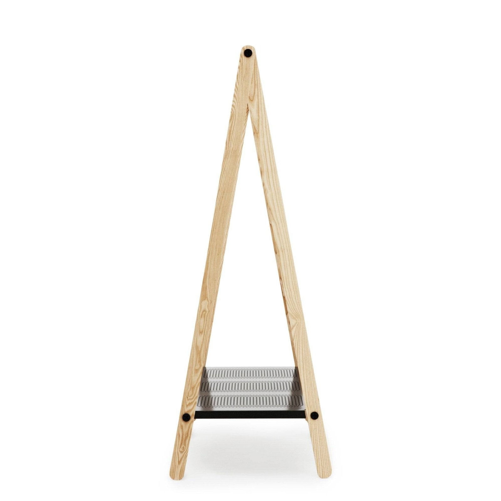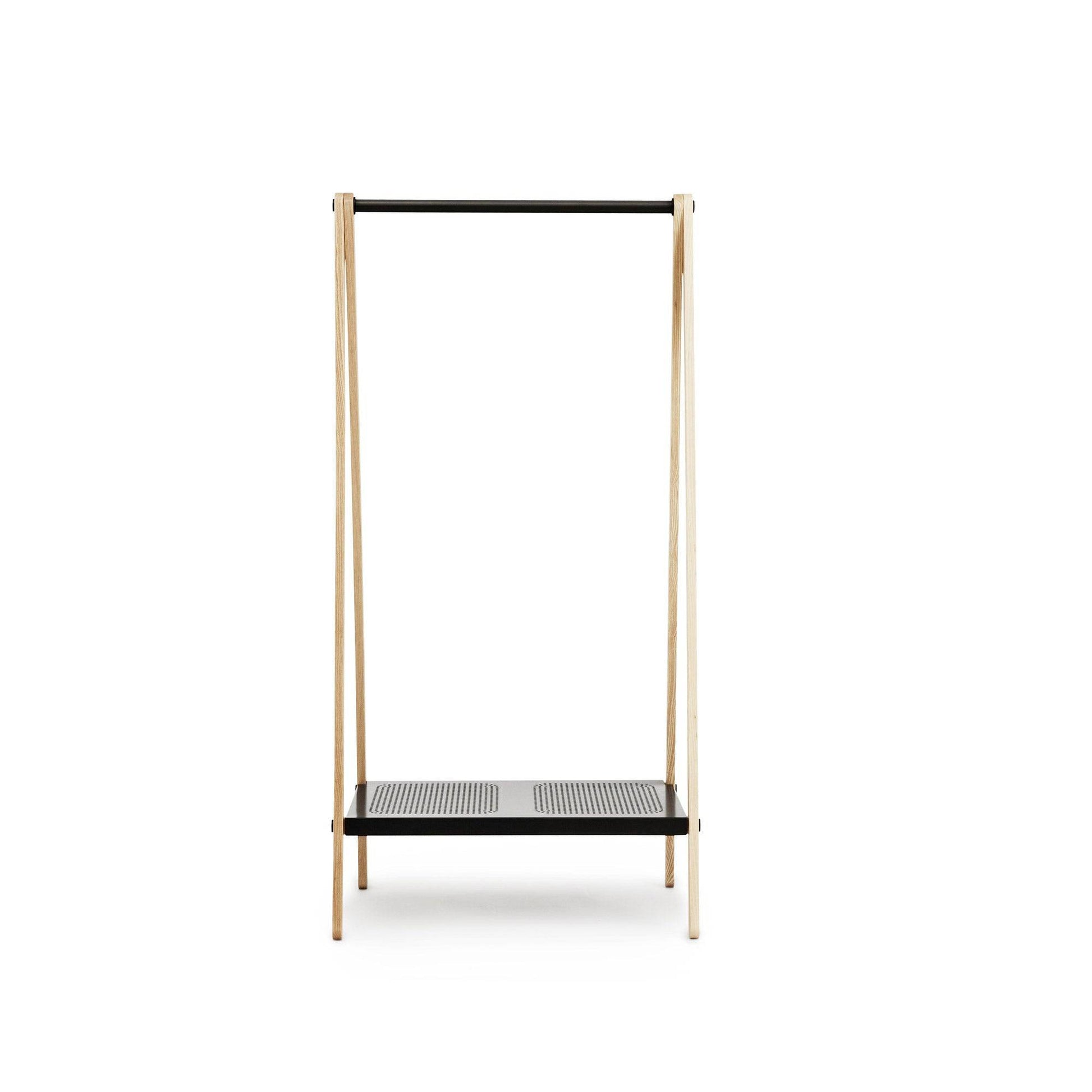 Toj is a clothes rack with an industrial and simple expression. Its function is evident and its simple construction - with a rail, shelf and trusses - provides space for clothes, shoes and bags.