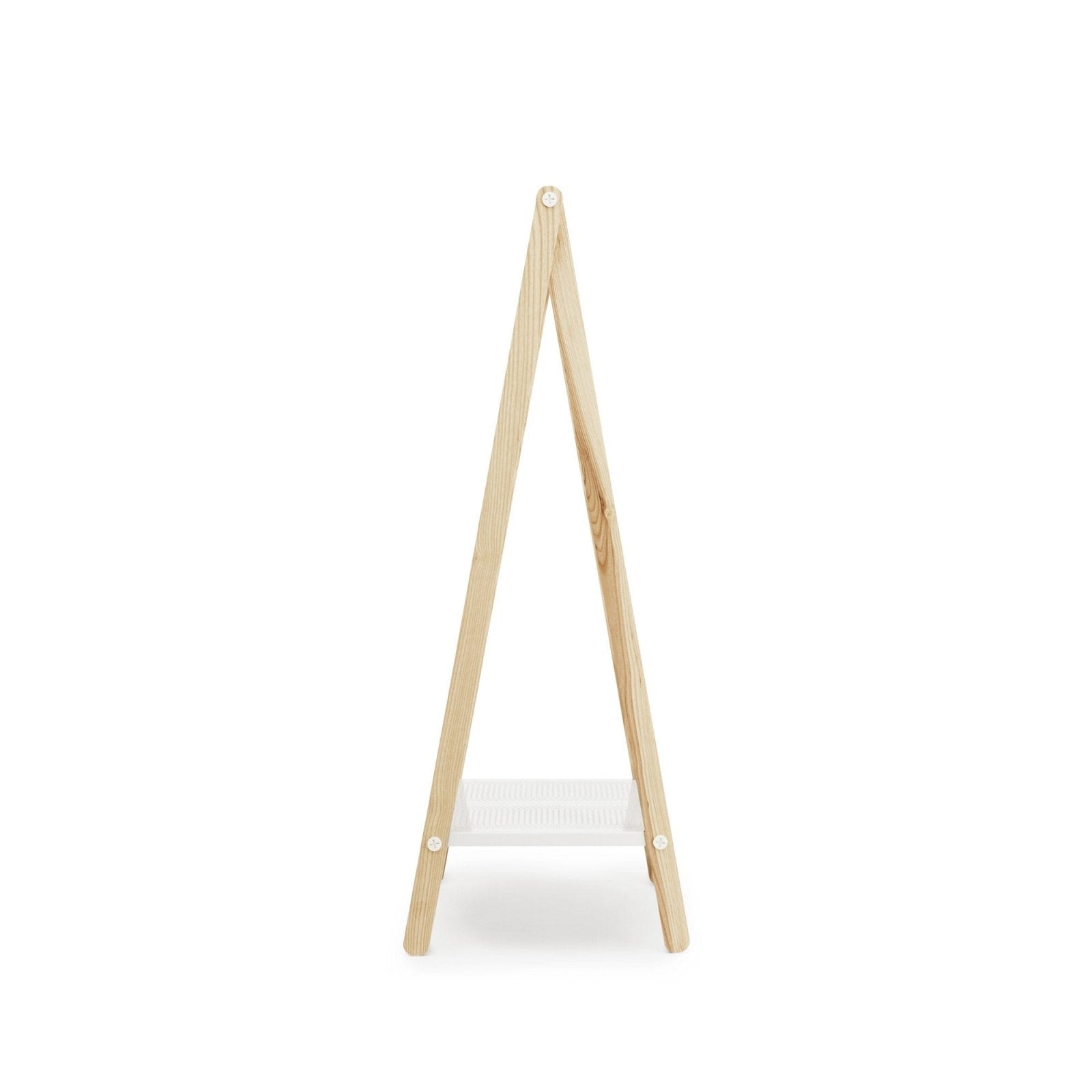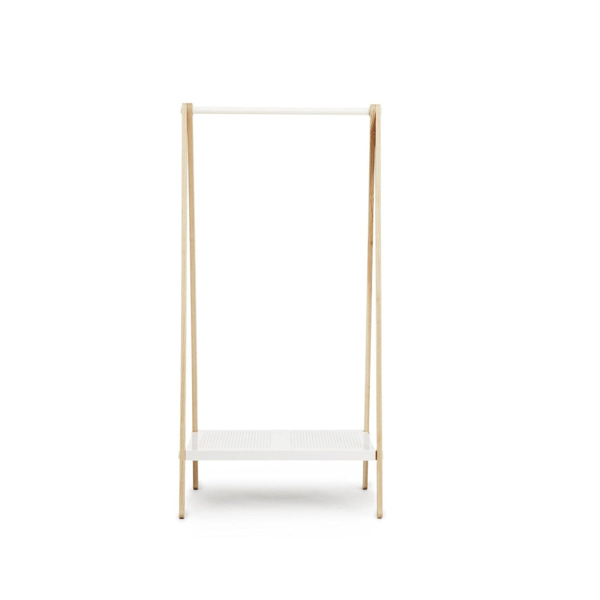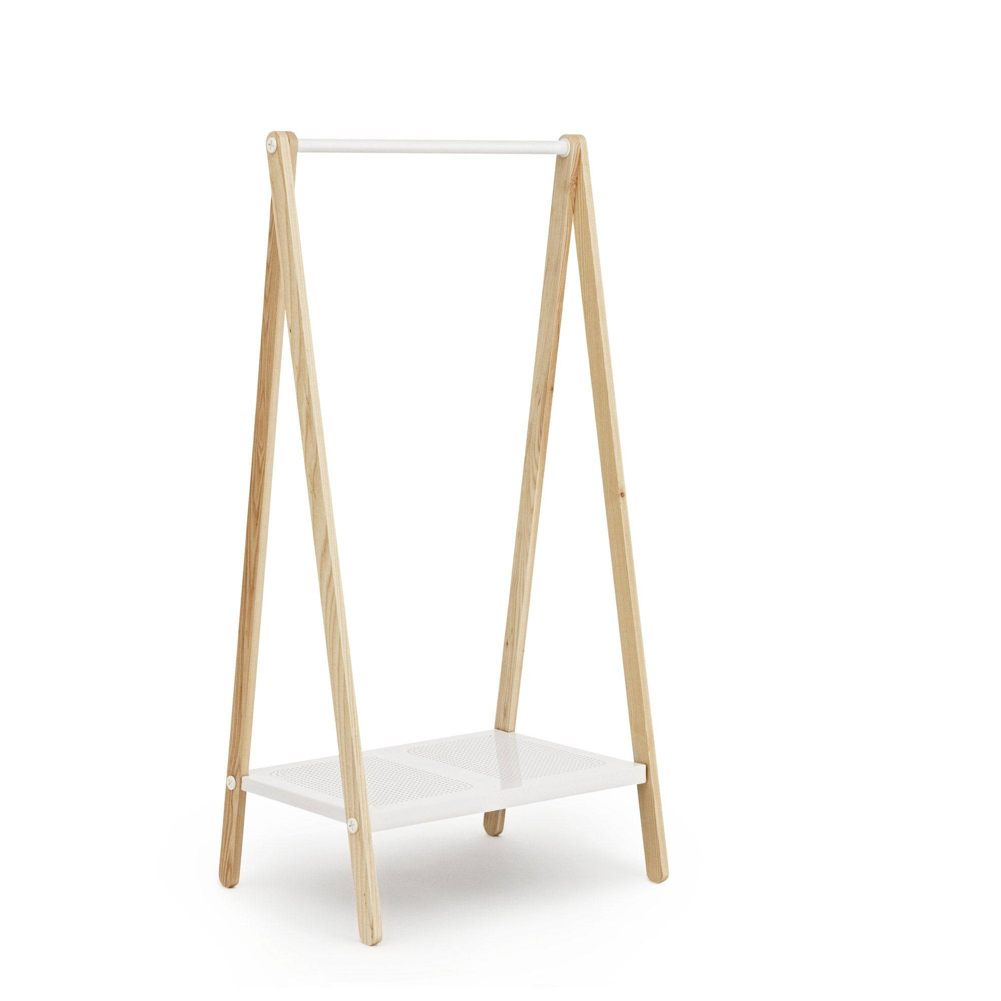 Toj is a clothes rack with an industrial and simple expression. Its function is evident and its simple construction - with a rail, shelf and trusses - provides space for clothes, shoes and bags.