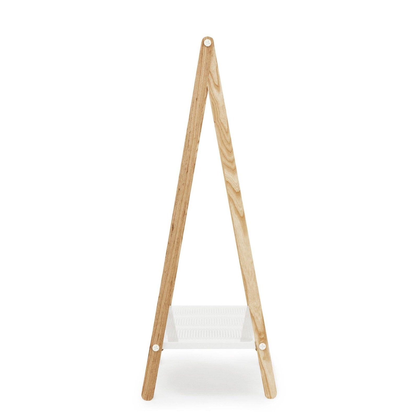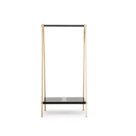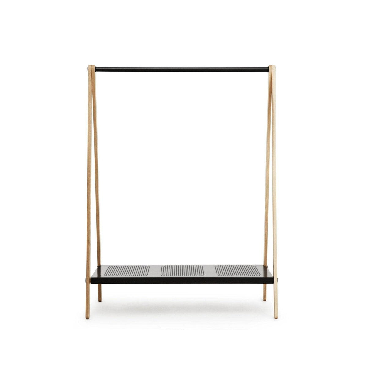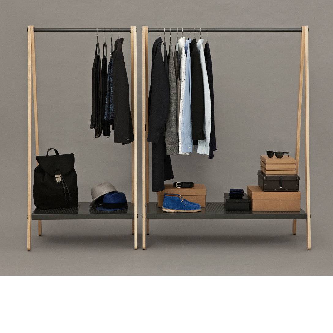 The idea behind Toj clothes racks is to bring the wardrobe out from the cupboard. Designer Simon Legald has created a clothes rack with an industrial and simple expression for Normann Copenhagen. Its function is evident and its simple construction and provides space for clothes, shoes and bags.