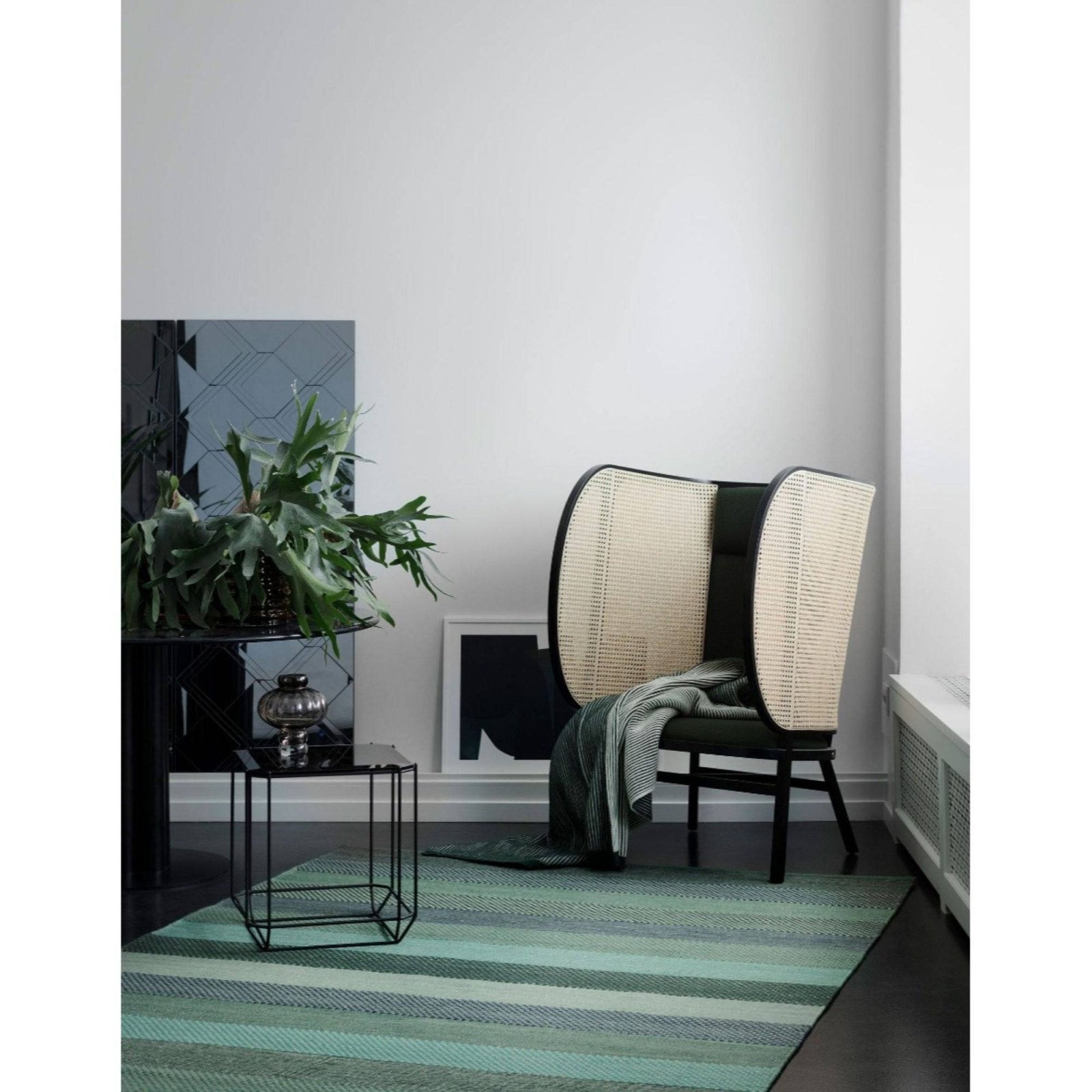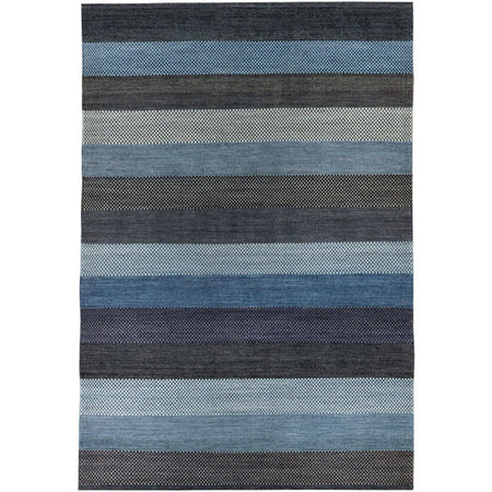 An inviting play with patterns guided by a carefully selected palette of strong calming indigo, deep midnight blue and black make this hand-woven rug in New Zealand wool a beautiful and classic design. Quietly saluting the Swedish rag rugs, Veronica brings an instant feel of style and comfort to a room. Like the sister designs of Iris and Myrtus, this is a simple, contemporary style with refined pattern and a three-dimensional visual effect thanks to the special Gabbeh-dye technique.