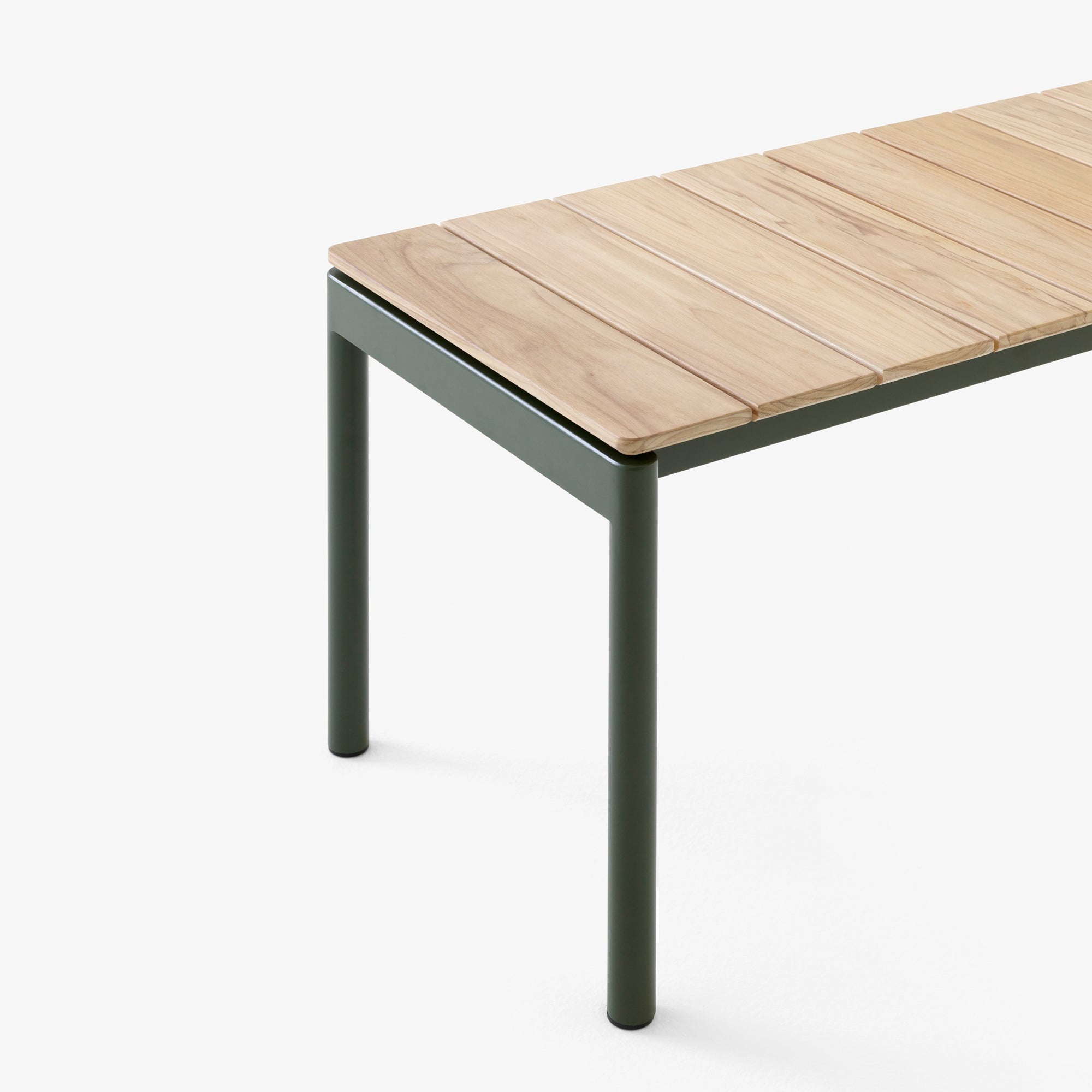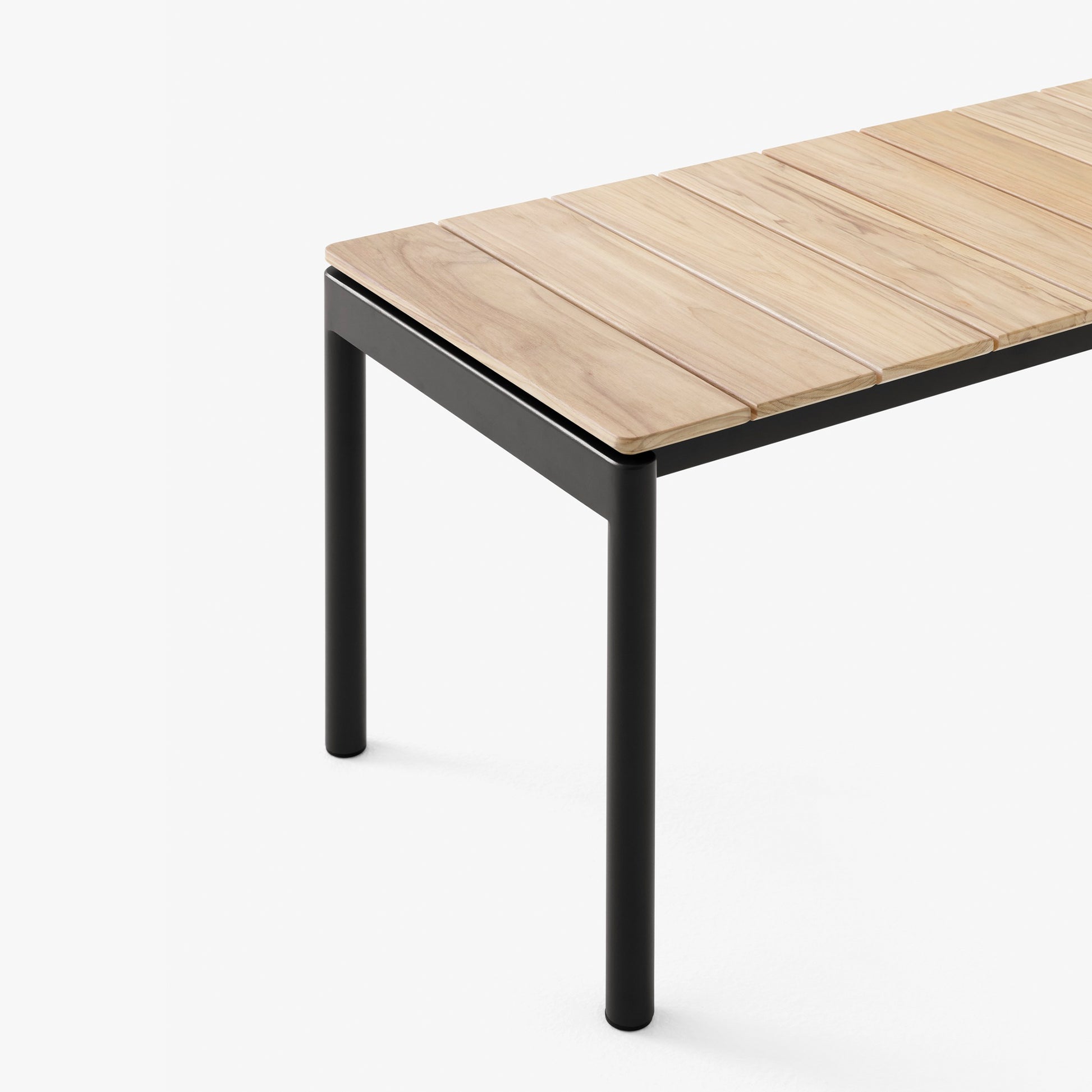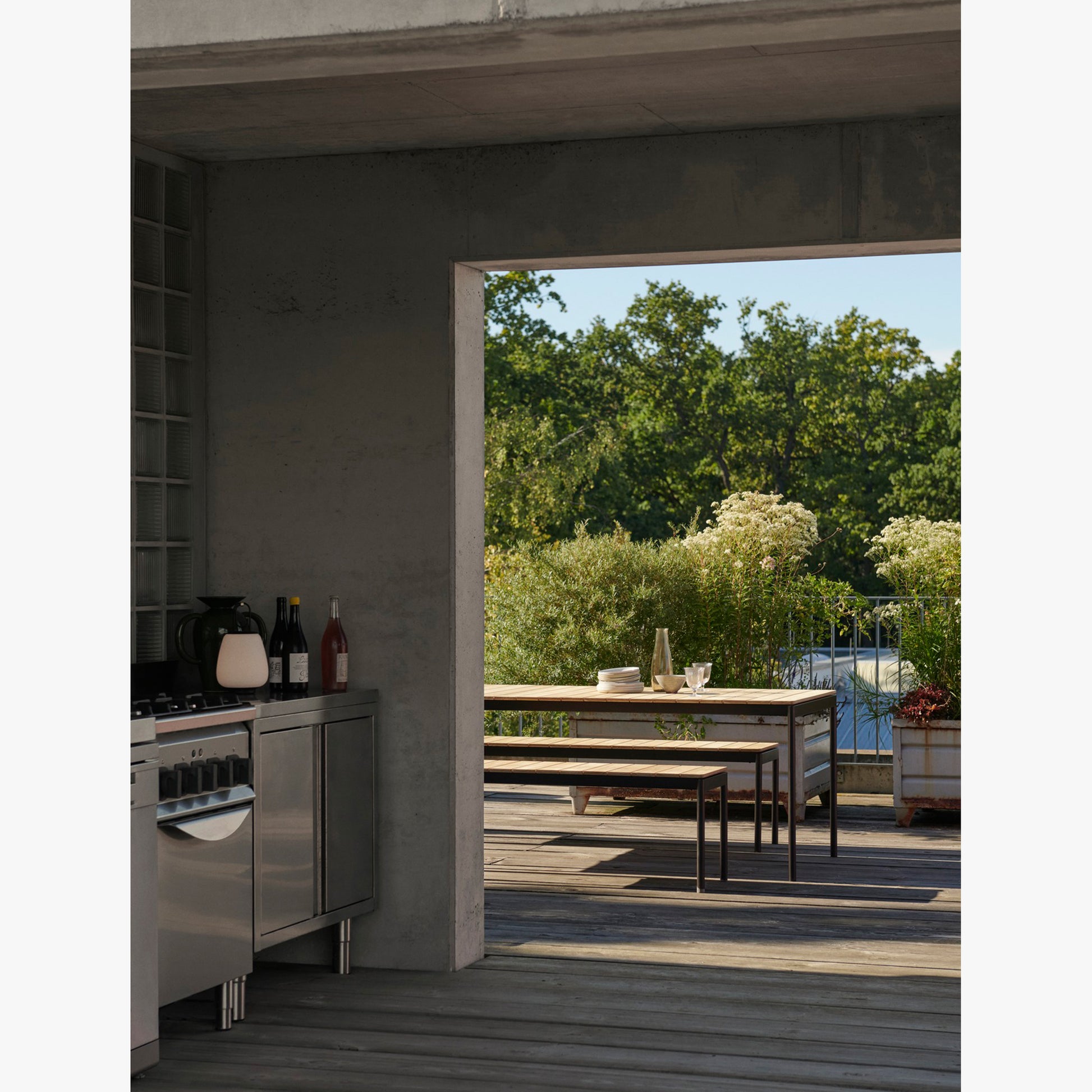 A celebration of nature and materiality, Anderssen & Voll’s outdoor collection Ville embraces alfresco living with a combination of solidity and softness. The larger size of the two benches in the collection, the AV28 was designed to accompany the AV26 table, but also stands alone as a seating option for multiple people in private homes or in hospitality settings. The teak provides a warm and inviting surface which can be oiled or left untreated to suit individual preferences.