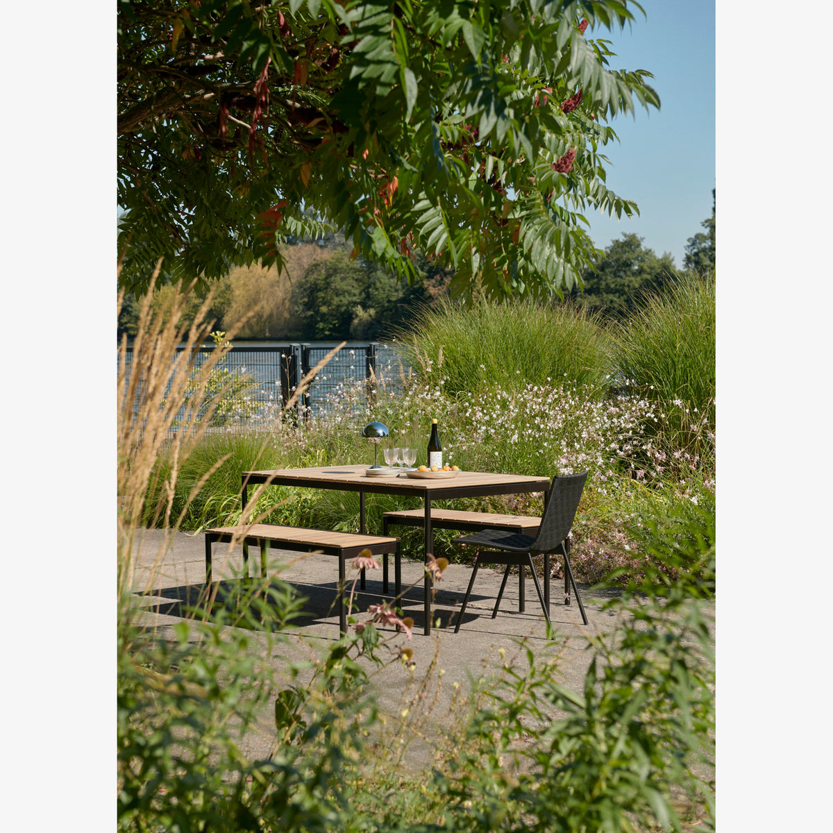 A celebration of nature and materiality, Anderssen & Voll’s outdoor collection Ville embraces alfresco living with a combination of solidity and softness. Chosen for its comfort and ability to adapt to body temperature, the Ville side chair’s back and seat are crafted from polyester webbing. Intuitively designed to suit the precise needs of hospitality settings or during the colder months at home locations, the Ville side chair stacks in multiples of up to 8 pieces.