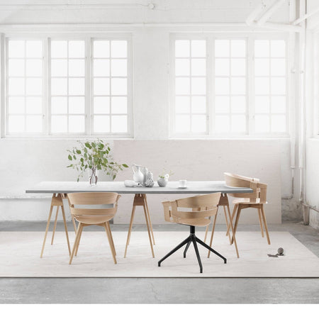 While today most shell chairs are made of plastic, Design House Stockholm breaks with the standard and produces the Wick Chair from bent wood.