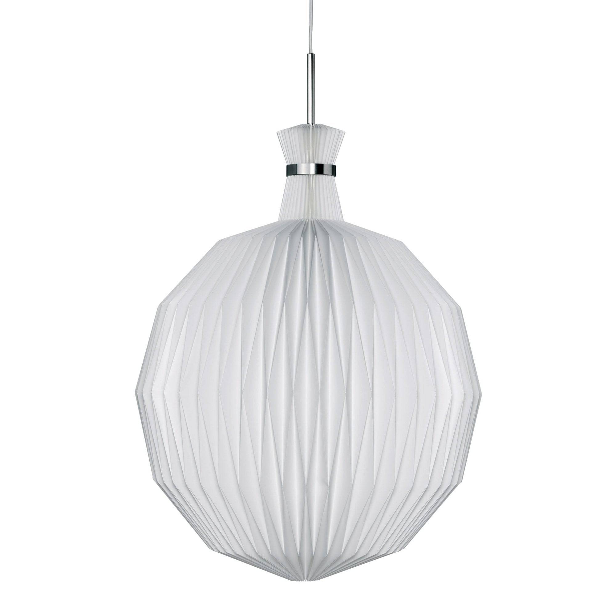 The Le Klint 101 or "the Fruit Lantern" was created in 1944 by Kaare Klint. This lamp is still one of Le Klint's best sellers. The woven plastic sheeting is completely washable and antistatic, and allows a crisp, white light to be diffused from the entire form for stylish and efficient lighting. Le Klint shades are hand-folded in Denmark from a single flat sheet of plastic. They come ready assembled in a box complete with 2 meters of white flex and a lamp holder. The 101 pendant light is available in 3 sizes.