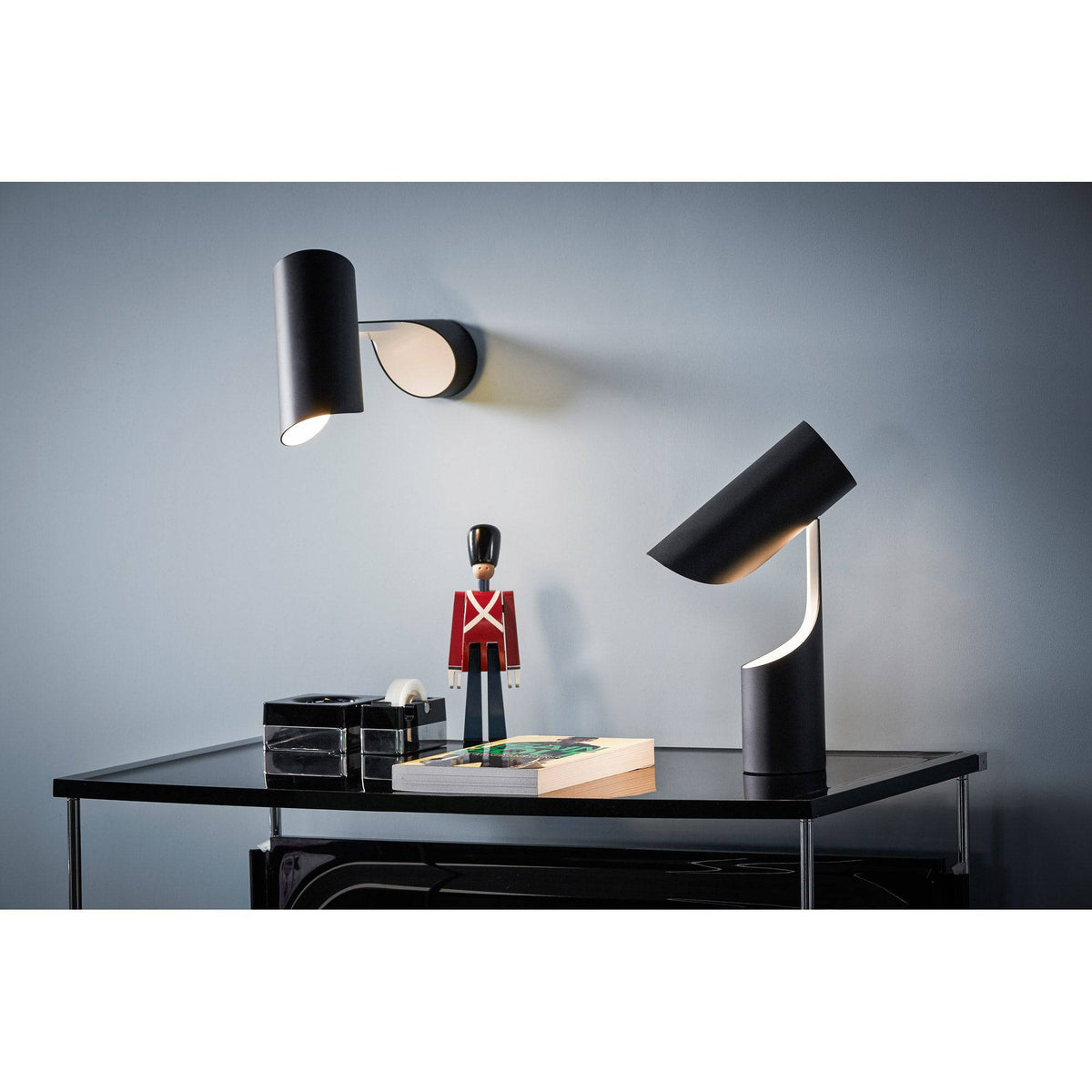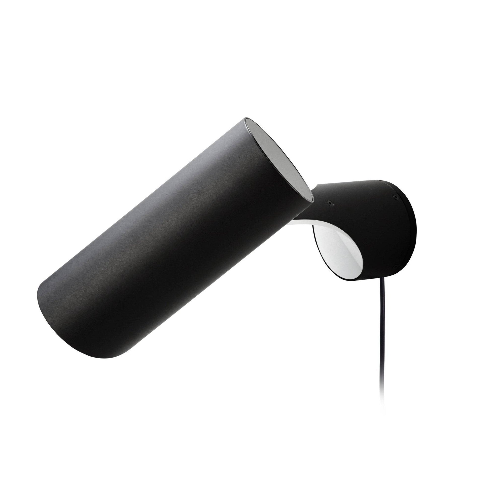 This latest design inspired by transformation and minimalistic geometry, discreetly has the on/off switch attached to the cord, allowing this beautiful matt black table lamp to stand freely in its cylinder form while engaging it's user into an experience when the black exterior is lifted to reveal light and a complimentary contrasting glossy white interior.