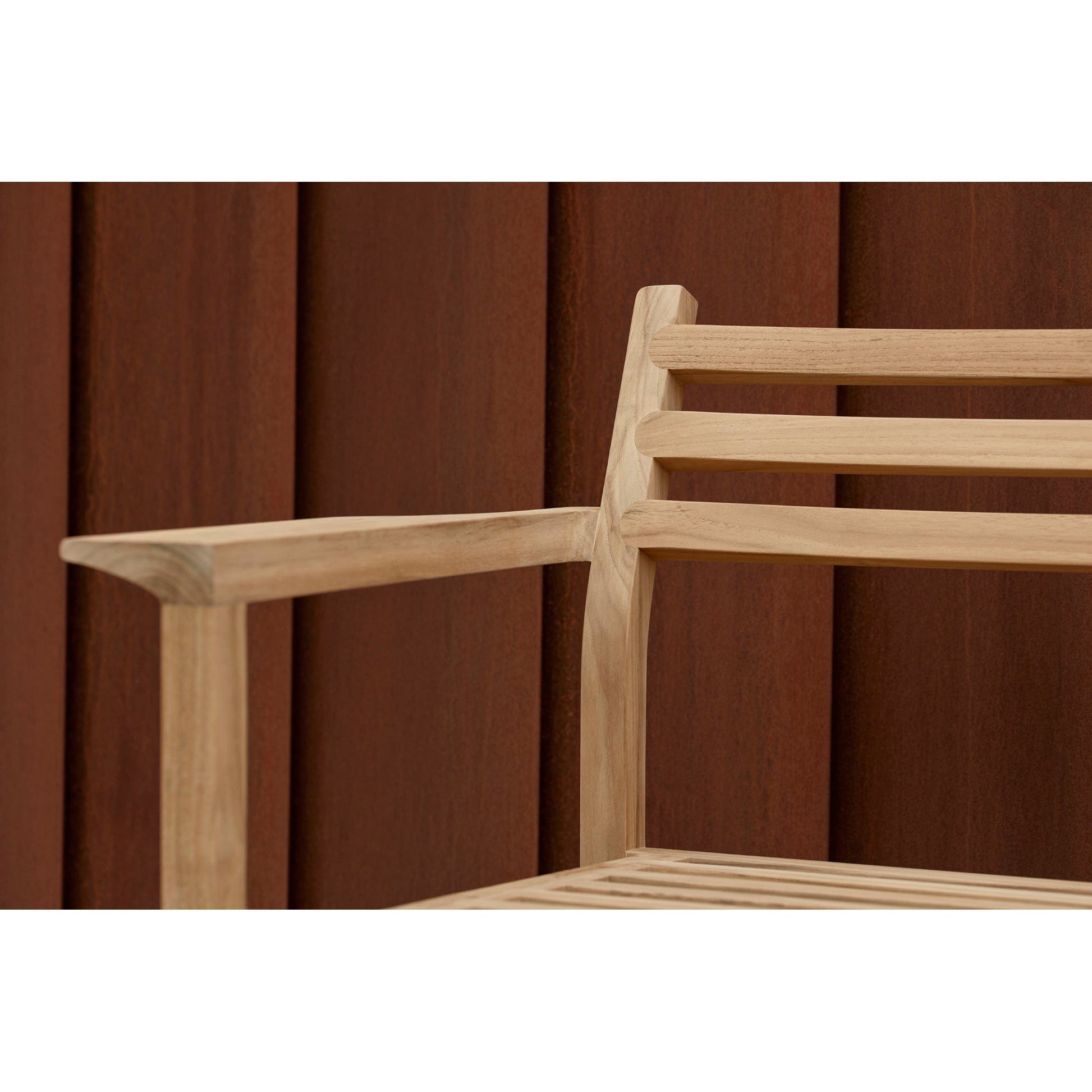 The chair is made of FSC™-certified teak, known for its durability and weather resistance.