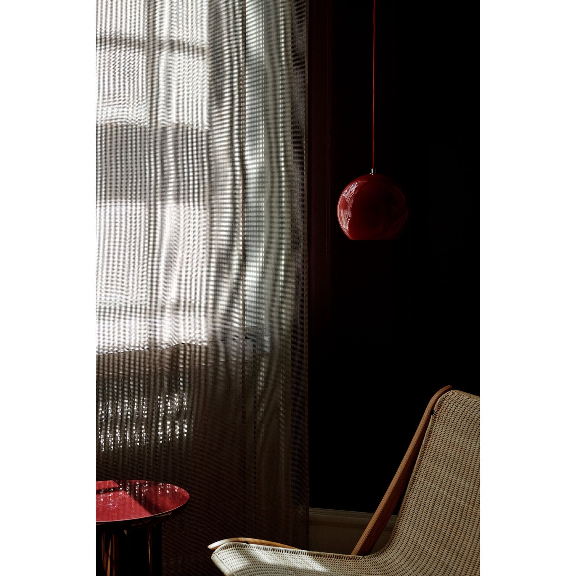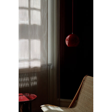 The Topan pendant, designed in 1959, was Panton's second ever design and his first mass produced lamp - later to be followed by the Flowerpot. A sculptural silhouette that not only provides illumination, Topan also acts as a decorative element either alone or in clusters, and adds targeted atmosphere to interiors. Alongside the existing Matt Black, version, Topan now comes in the new Vermillion Red colour way, reflective Chrome, and the neutral Grey Beige tone.