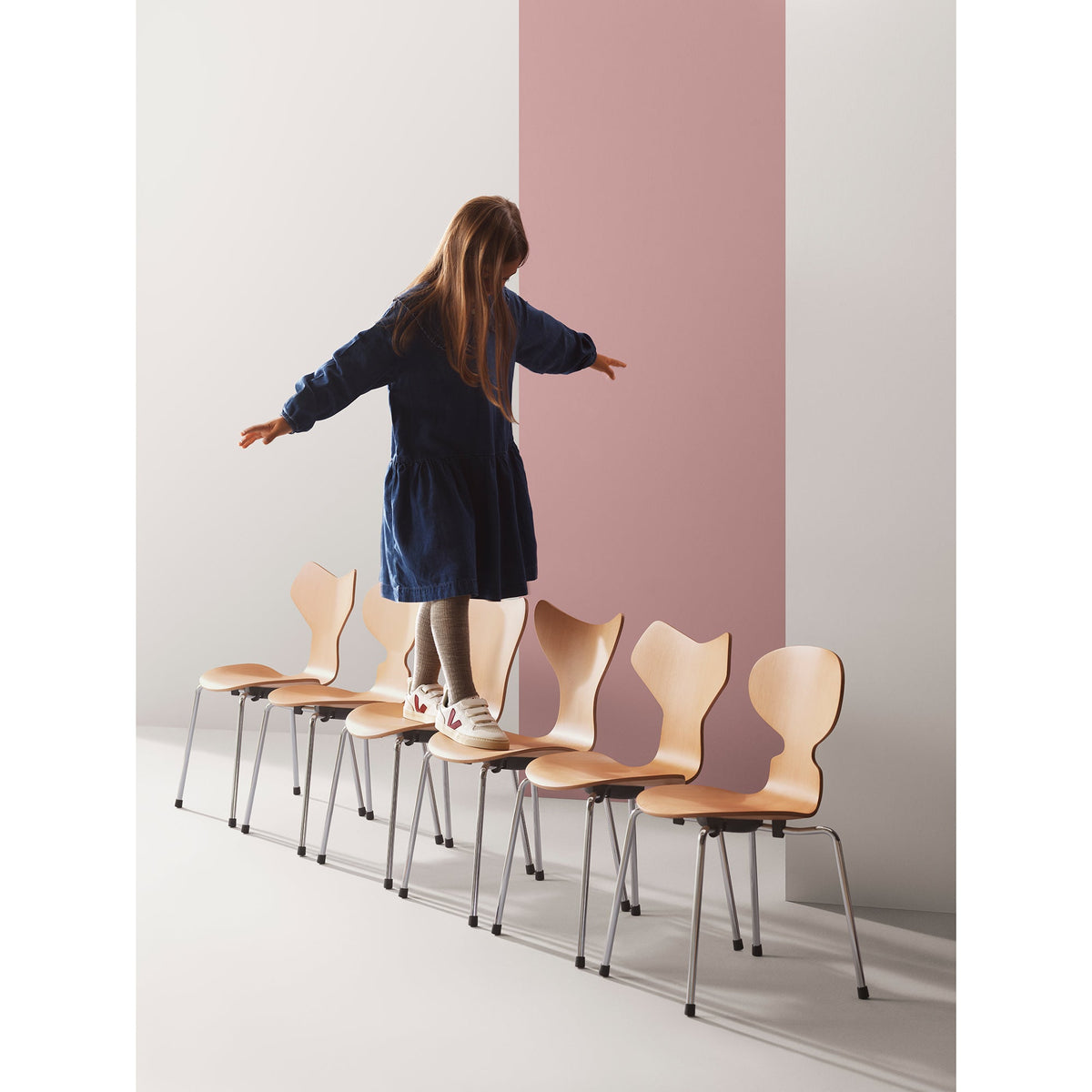 Stackable practicality: Can be stacked with other Arne Jacobsen children’s chairs for easy storage.