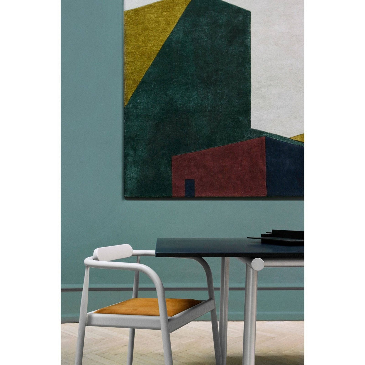 The heavy texture helps to transform the acoustic signature of any environment, whether they’re hung on a wall or spread on a floor. All the pieces in this collection are hand-woven in India by master artisans who have perfected their skills through generations.