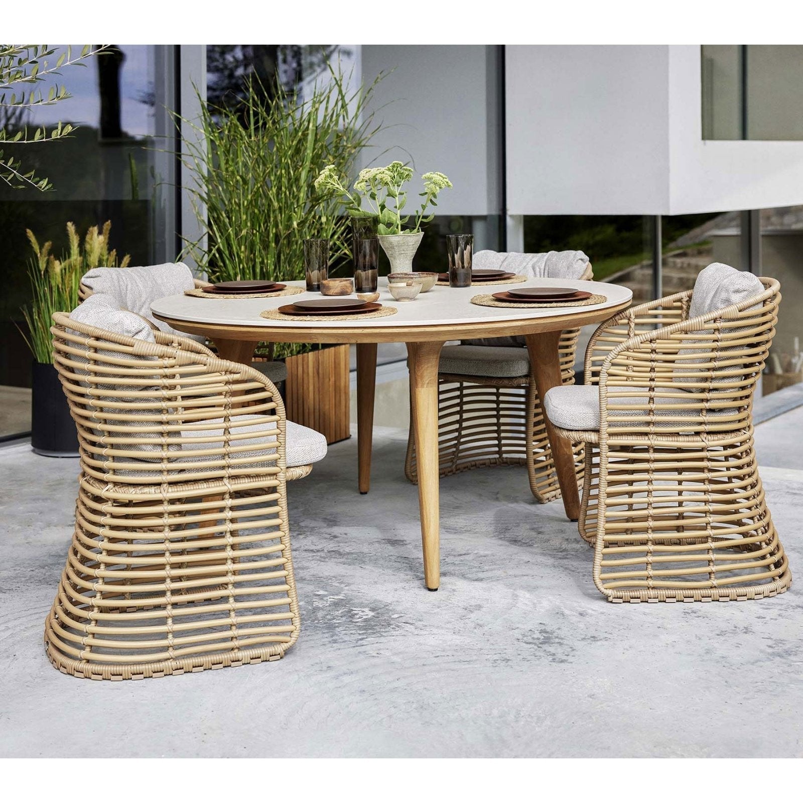 Aspect is a round table of exceptional quality made with durable and elegant materials. Aspect is designed by Cane-line Design with a focus on creating a unique series of tables that match the growing collection of high-end chairs for outdoor spaces.