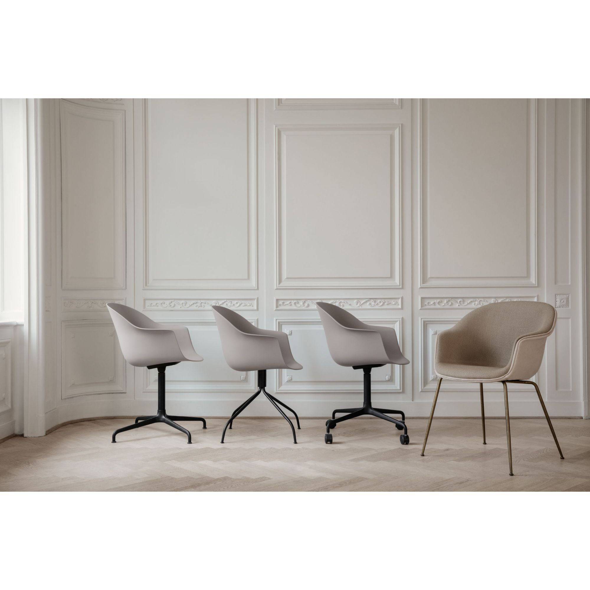The Bat Meeting Chair fulfils the natural balance between corporate necessity and formal elegance. While the base embodies clean design with great functionality, the fully moulded seat with armrest ensures high level of comfort. The features are paired and provide a sophisticated expression to any meeting room or home office. The wide range of shell colours, upholstery options and diverse bases provides for a personalised expression that makes the Bat Meeting Chair fit perfectly into a variety of public and private contexts. Due to its unique design, the textile of the front upholstered Bat Meeting Chair can be changed with time to give the chair a different expression and new life to the interior decoration. The Bat Meeting Chair is designed by GamFratesi and carries strong references to the interesting characteristics of bats, with its inviting, distinctive shell reminiscent of the shape of a bat’s wingspan.