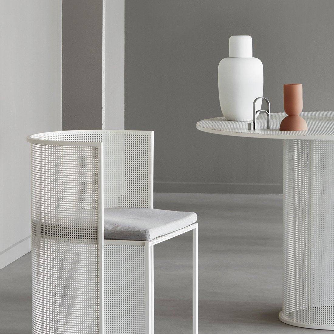 A fabric heritage cushion specially designed for The Bauhaus dining chair is now part of the new Kristina Dam Studio collection.