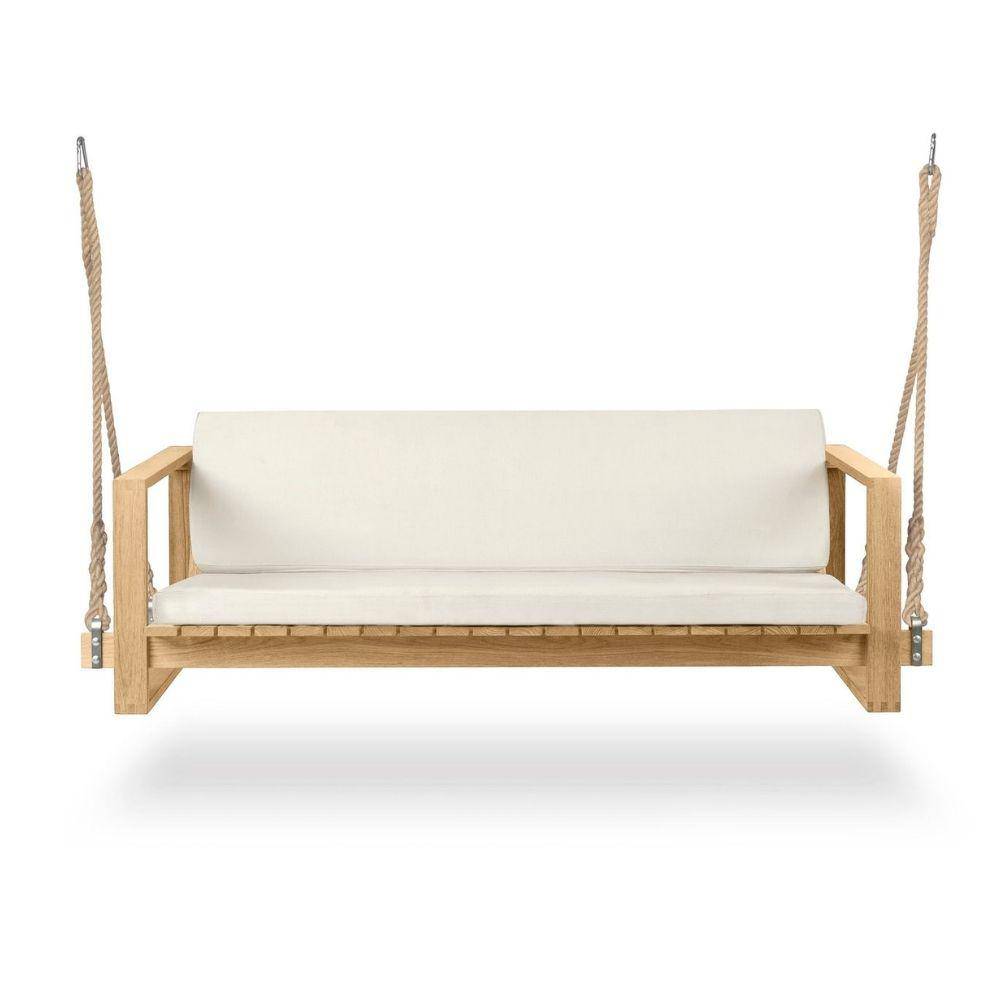 Designed to withstand harsh weather, the swing sofa also offers superior comfort, suspended from knotted ropes to provide a gentle rocking motion. Suitable for both indoor and outdoor use, it can be paired with cushions made from weather-resistant Sunbrella fabric as well as the BK17 A-frame for easy suspension: