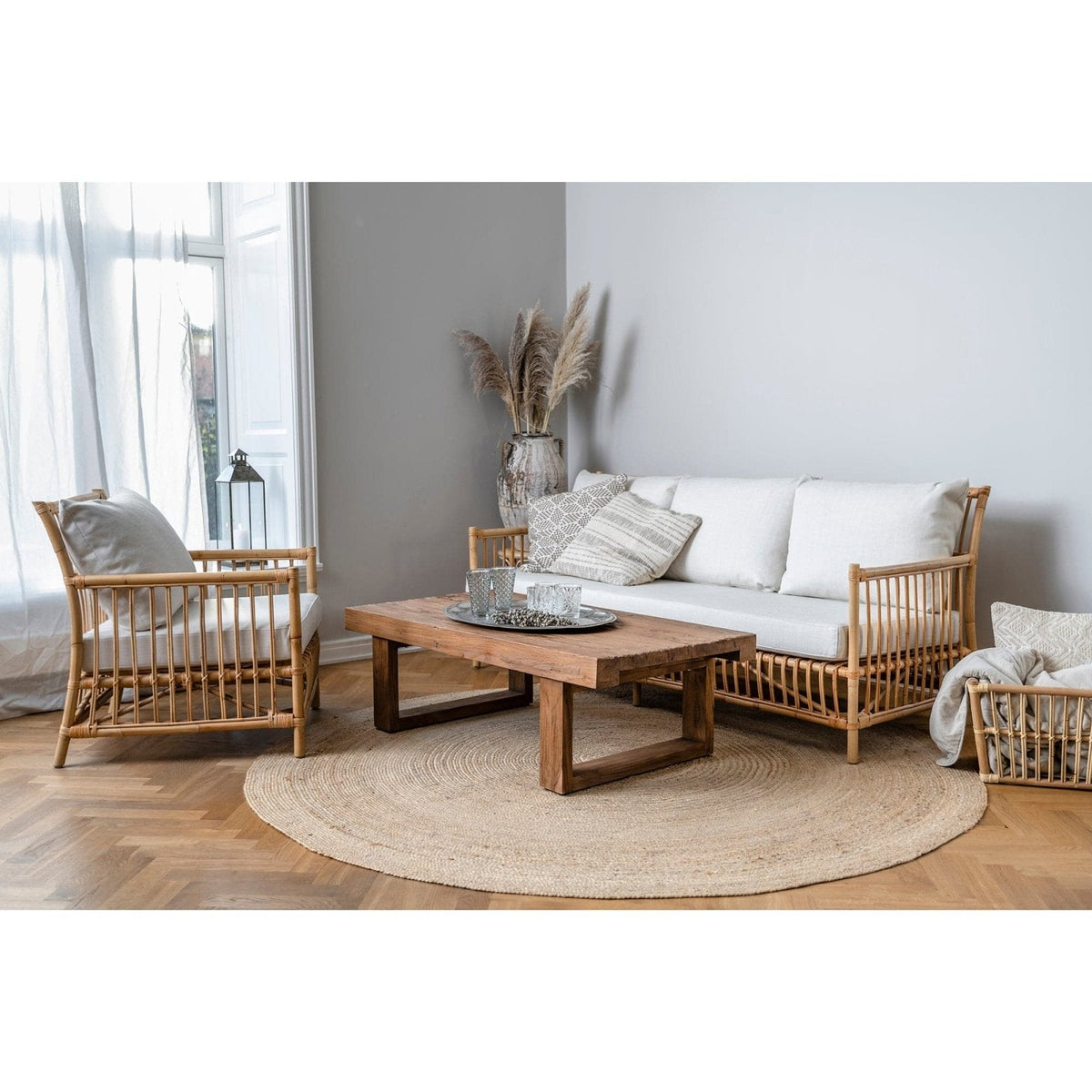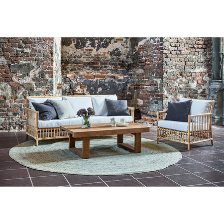 Caroline 3-seater is designed by Sika-Design and is made in Alu-Rattan and ArtFibre materials. Alu-Rattan is weatherproof powder coated aluminum and ArtFibre is artificial fibers made of maintenance-free polyethylene that can withstand the sun's UV radiation. Due to the weatherproof materials, the furniture can withstand being outside throughout the year without maintenance.