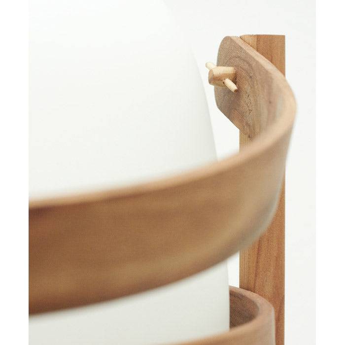 The Cesta, a magic lantern created by well-known designer Miguel Milá, consists of a cherry wood structure and an inner ball of light. Its oval volume and handle make it equally ideal for table tops and the floor.