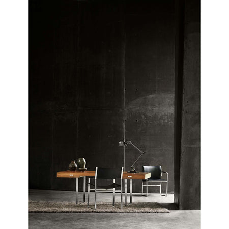 The CH110 Desk, designed by Hans J. Wegner in 1970, stands out as a striking departure from his renowned solid-wood designs. Conceived as part of an exclusive office concept, the desk reflects Wegner’s exploration of steel-framed furniture while retaining his signature focus on functionality, proportion, and craftsmanship.