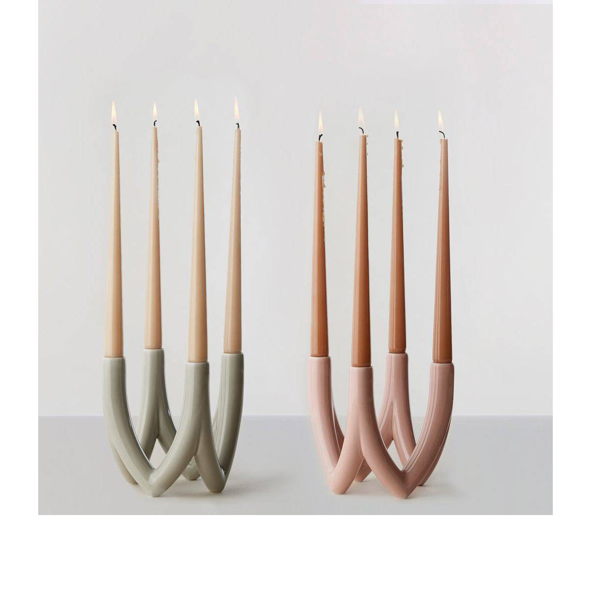 Ro Collection's Chandelier is a four-armed candleholder, uniquely created with inspiration from the traditional craft of Nordic candle light crowns. The chandelier holds up to four tall candles but is beautiful with fewer as well.