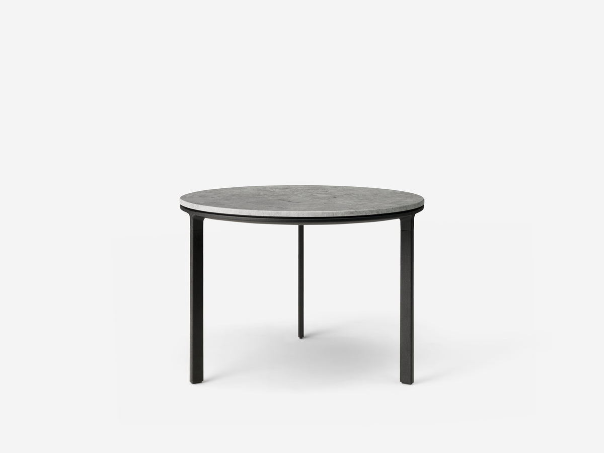 Materials: Black powder-coated aluminium frame, tabletop in polished marble or dark oak