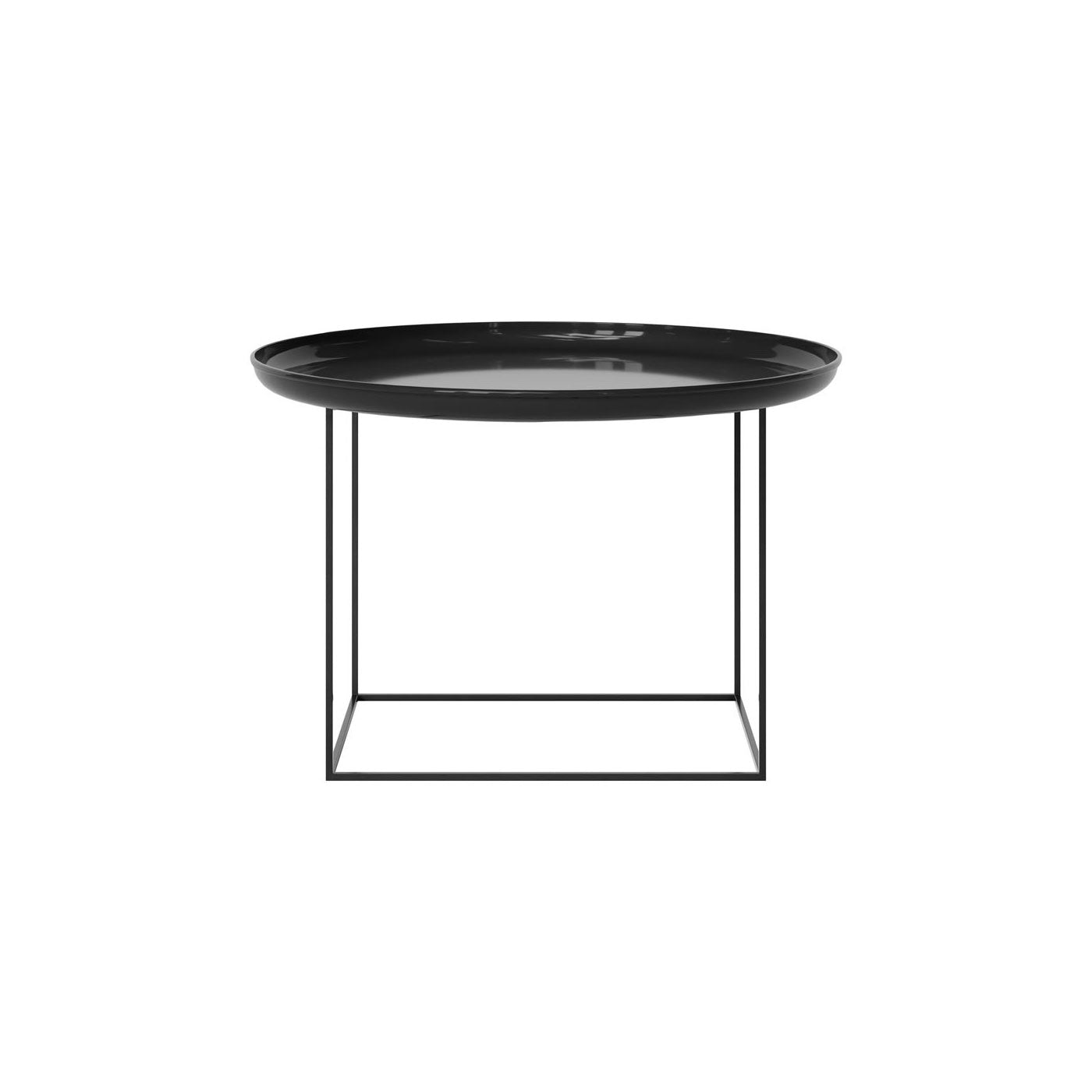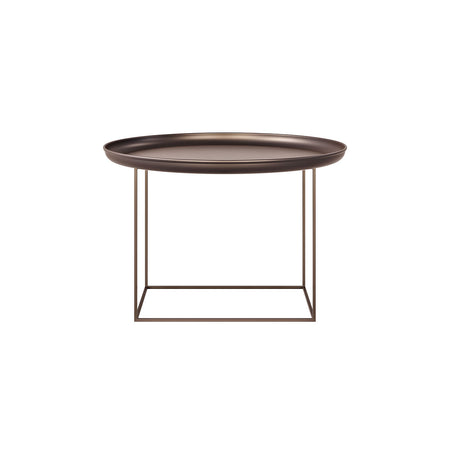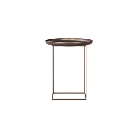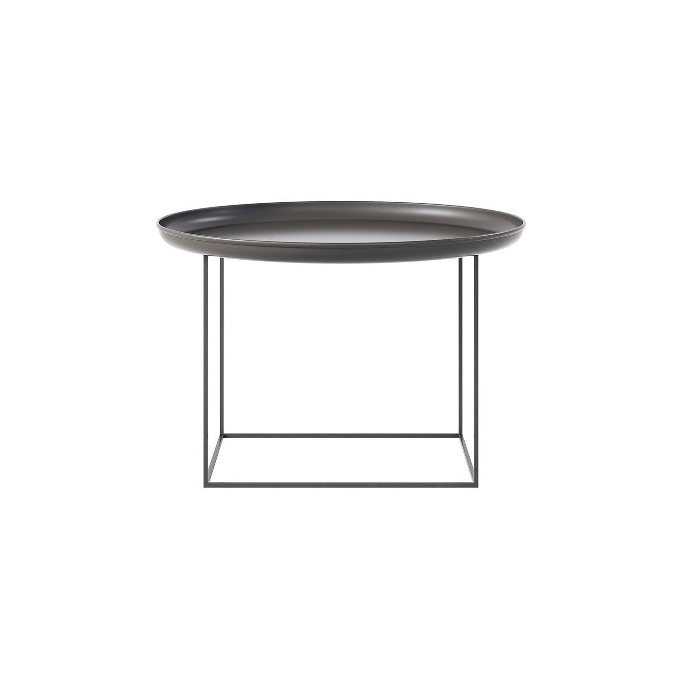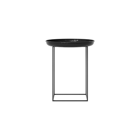 Made of powder-coated steel, the Duke table is a multifunctional piece of furniture that comes in three different sizes. The tray top can easily be lifted and the base can be rotated to different heights. Combining all three sizes together creates a landscape complimenting any setting.