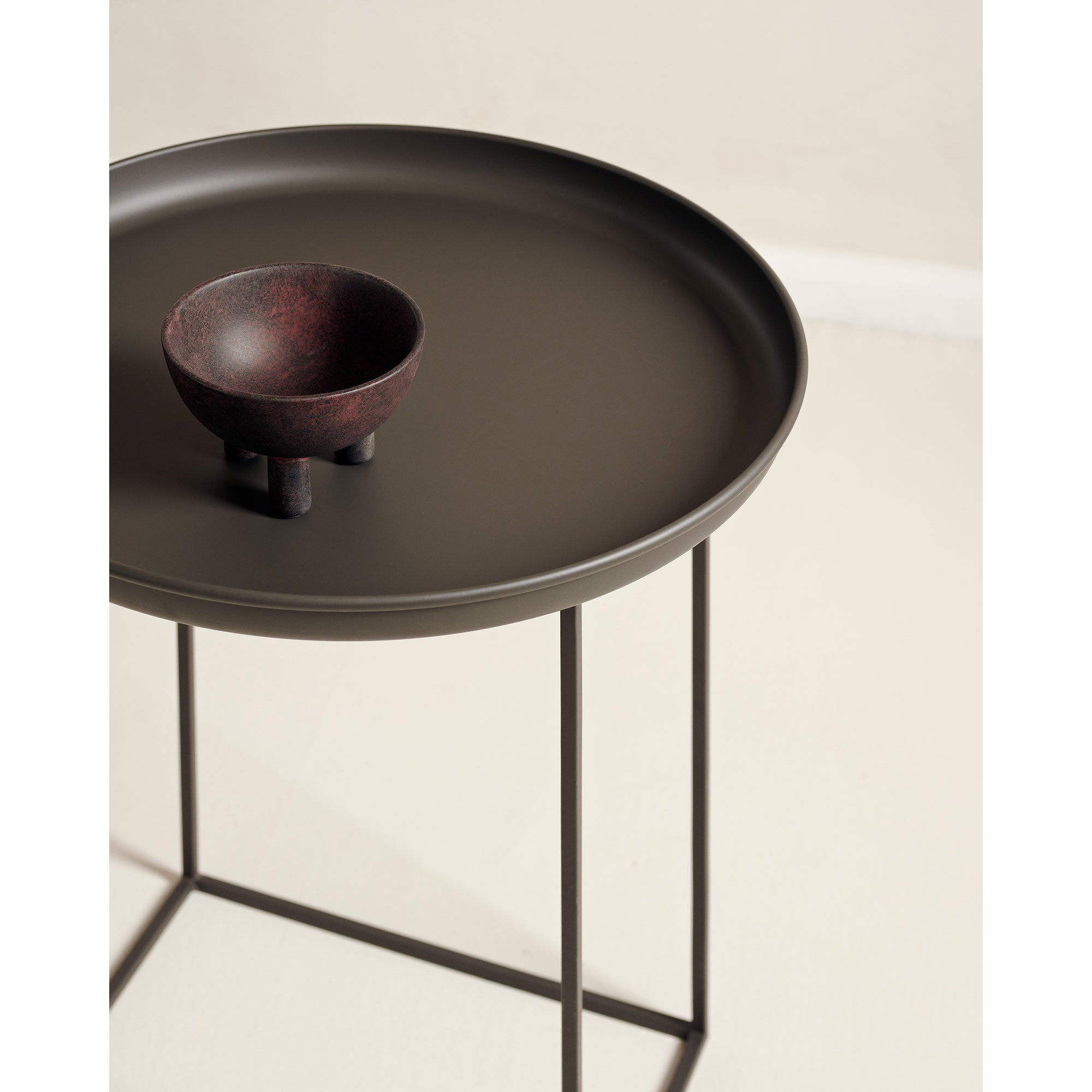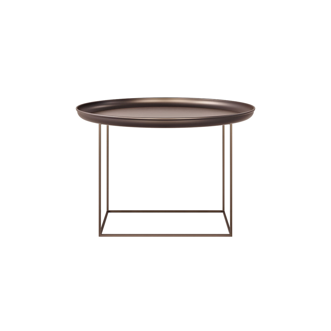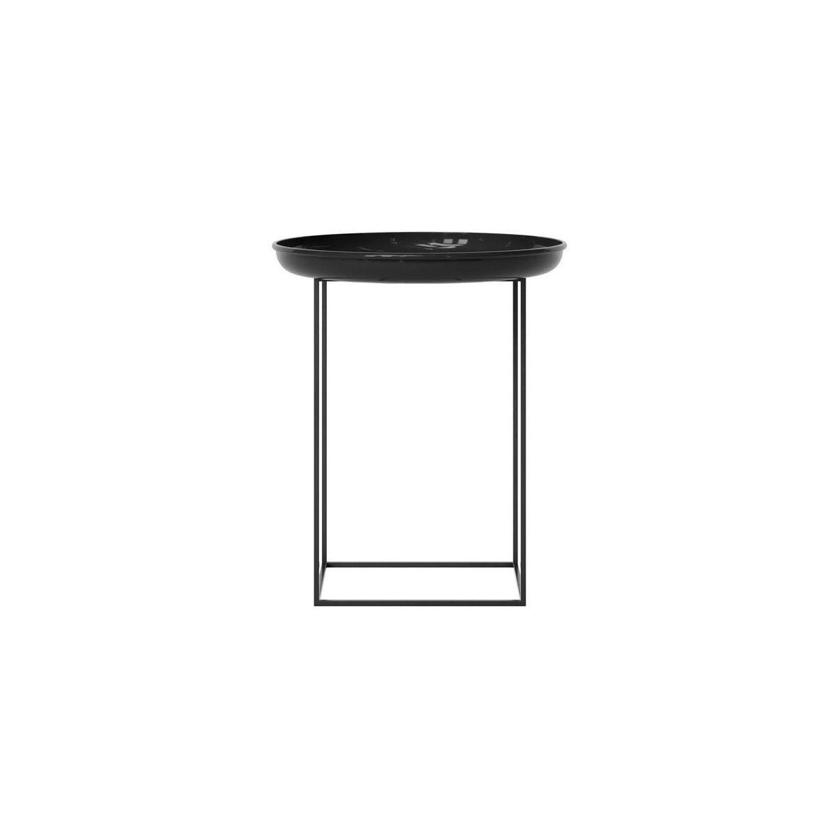 Made of powder-coated steel, the Duke table is a multifunctional piece of furniture that comes in three different sizes. The tray top can easily be lifted and the base can be rotated to different heights. Combining all three sizes together creates a landscape complimenting any setting.