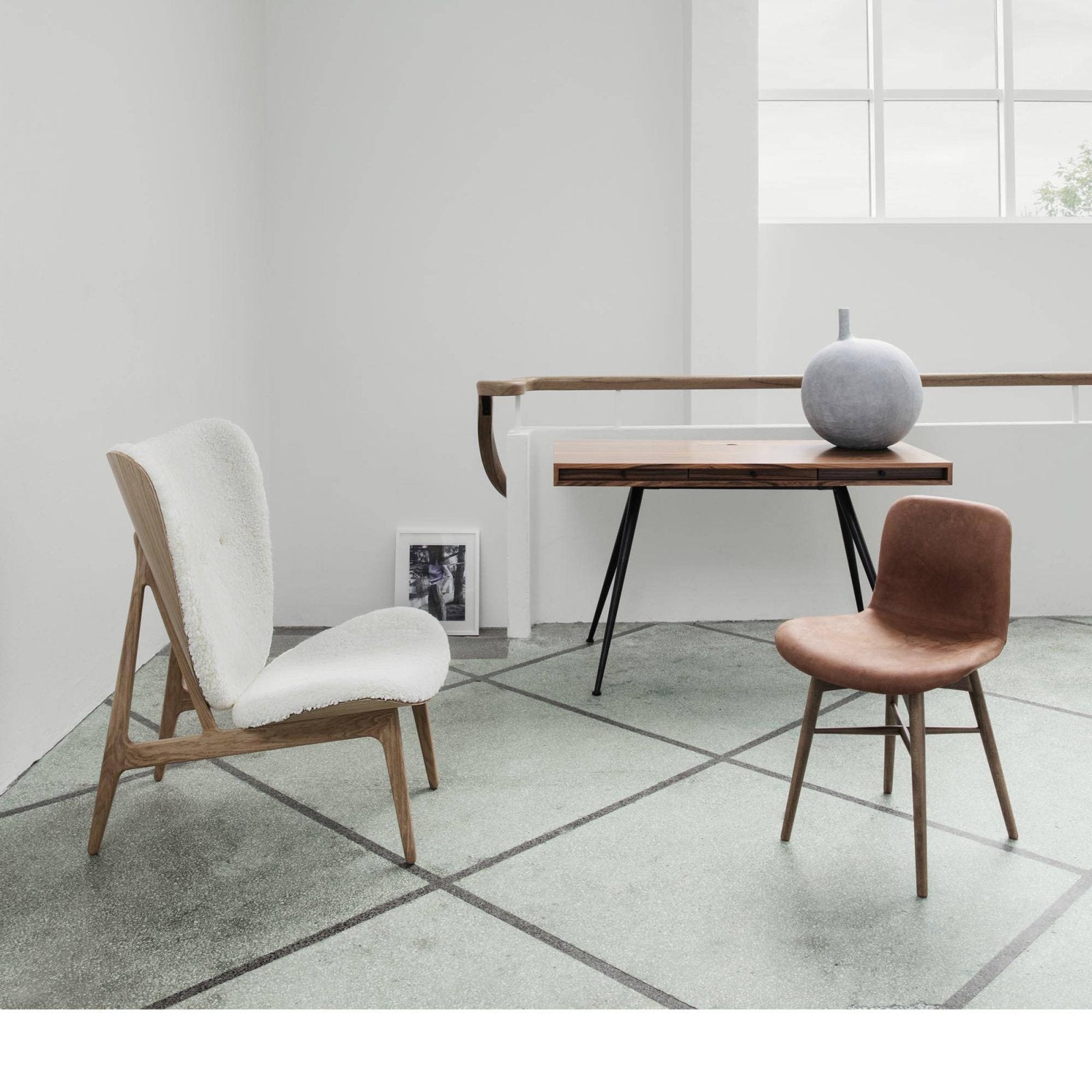 The design is inspired by Danish upholstered chairs of the 1950’s, while drawing visible characteristics from the already iconic Mammoth Chair. The result is a light and elegant lounge chair where the Elephant ear shaped back gently curves around the body providing superior comfort.