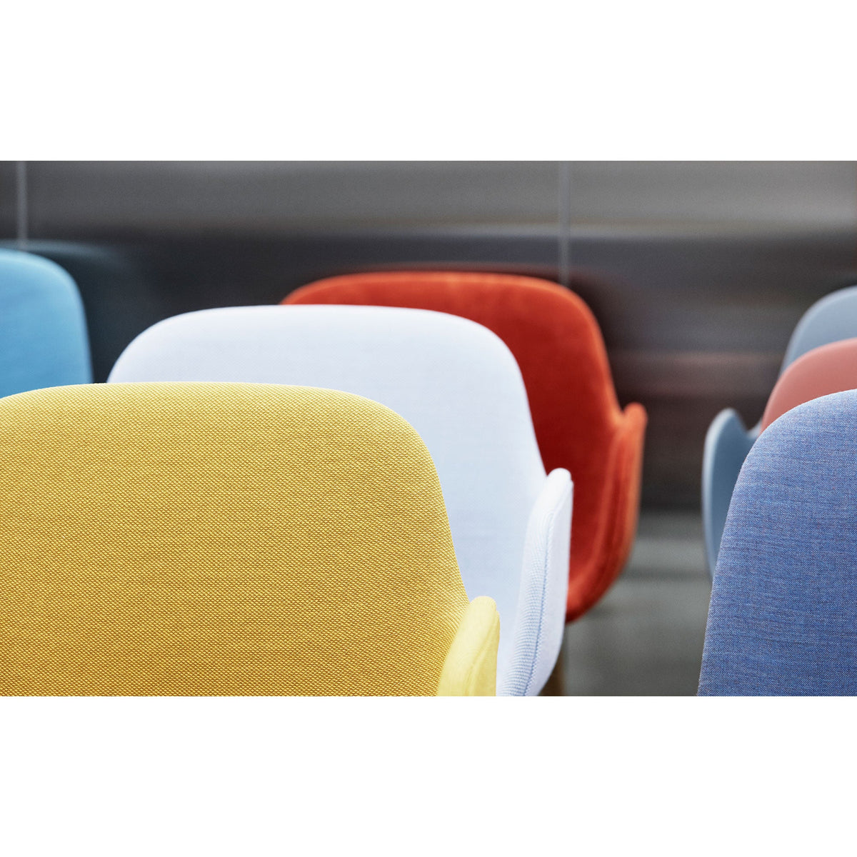The upholstered version of the chair emphasizes the main concept of the design, and is a beautiful illustration of how Form’s strong design language and well considered silhouette gets a different, sensuous dimension and increased comfort. Luxurious woolen textiles and exclusive leather soften the expression and add warmth, while the specially developed mounting solution also gets a new appearance, taking the look in new directions.