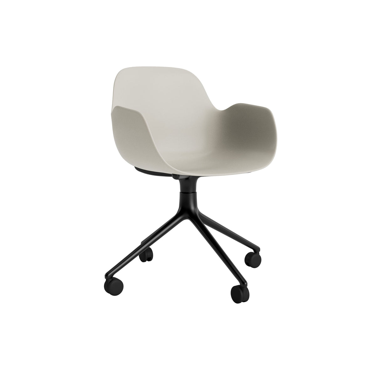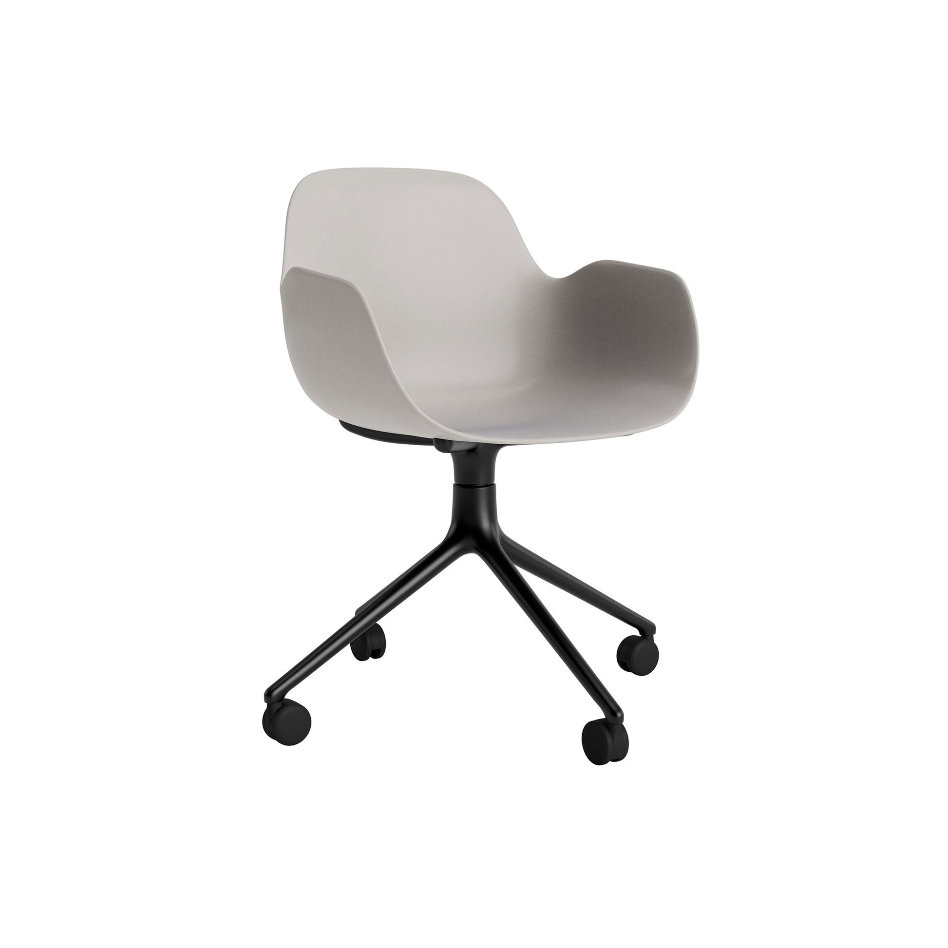 The swivel base grips the chair shell with four slim arms that meet in a rotating centerpiece, which then branch out into either five or four legs, depending on whether the chair comes with castors. The specially-developed assembly principle permits a wide range of combination options, in which the various Form models, chair, armchair and barstool, can be given different expressions, all according to the choice of base, color and upholstery. With a dazzling number of over 40,000 possible combinations, Form can be customized to fit exactly the style and mood that you want to create.
