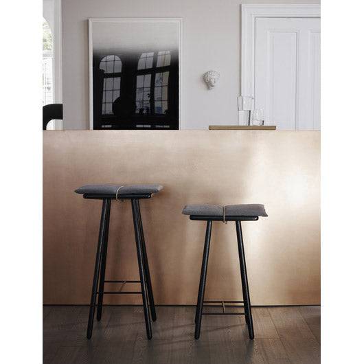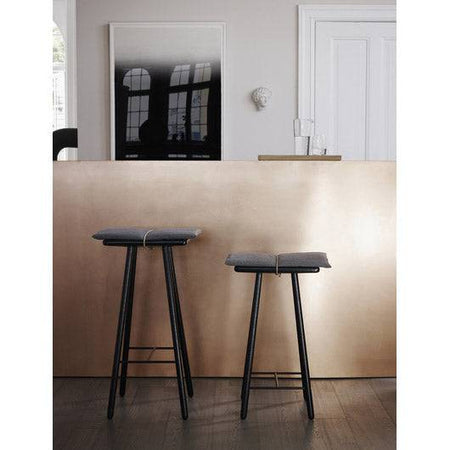 The Georg Bar Stool from Skagerak by Fritz Hansen is a refined blend of Nordic sensuality and Japanese minimalism. Designed by Chris Liljenberg Halstrøm, it is characterised by slender oak poles, a woollen cushion, and a braided leather strap that keeps the seat in place while adding a tactile detail. A metal H-frame provides stability and doubles as a functional footrest, making the Georg Bar Stool both elegant and comfortable. With its simple yet distinctive expression, it is a timeless piece for modern kitchens, bars, and dining areas.