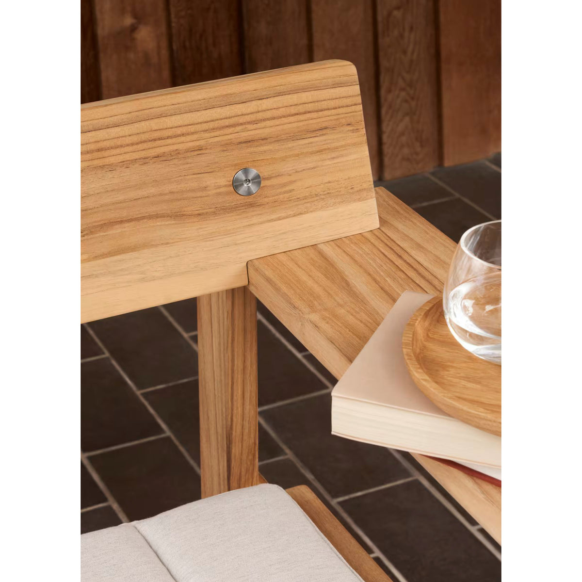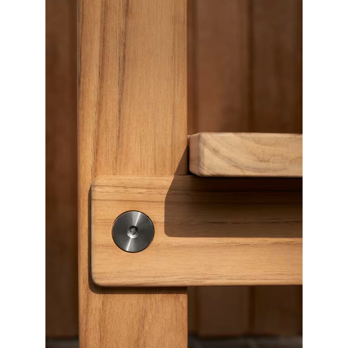 Its modular, flat-packed construction highlights minimalist joinery while celebrating the natural beauty of teak.