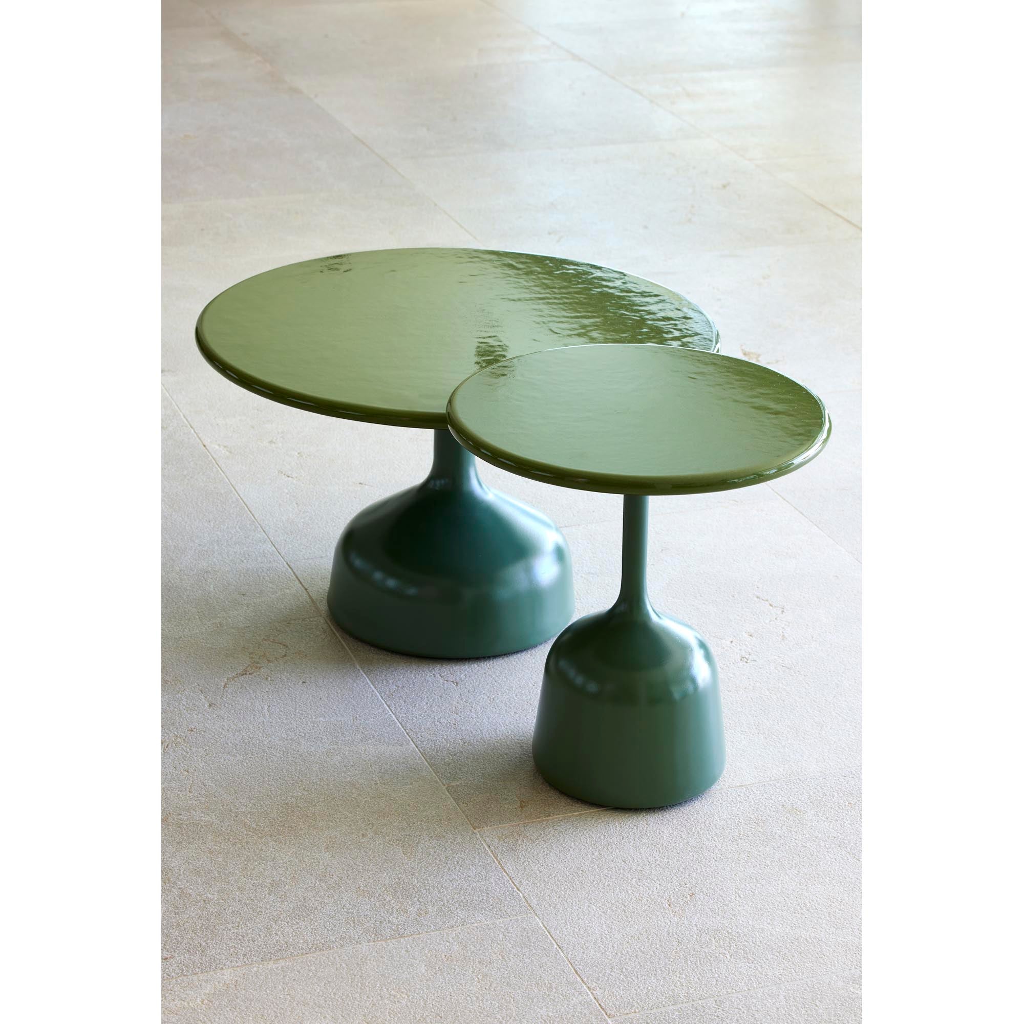 Glaze is an elegant and decorative coffee table. The Glaze coffee table is also the perfect addition to your lounge area or small reading spot in the garden. Decorate your outdoor space with a mix of Glaze tables in different sizes, colours and materials for a playful and vibrant look. Glaze lava stone tabletop is made from natural materials, so small imperfections are to be expected and adored.