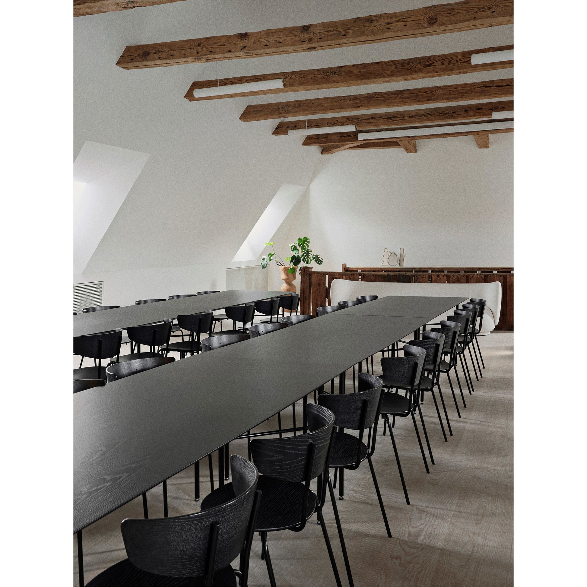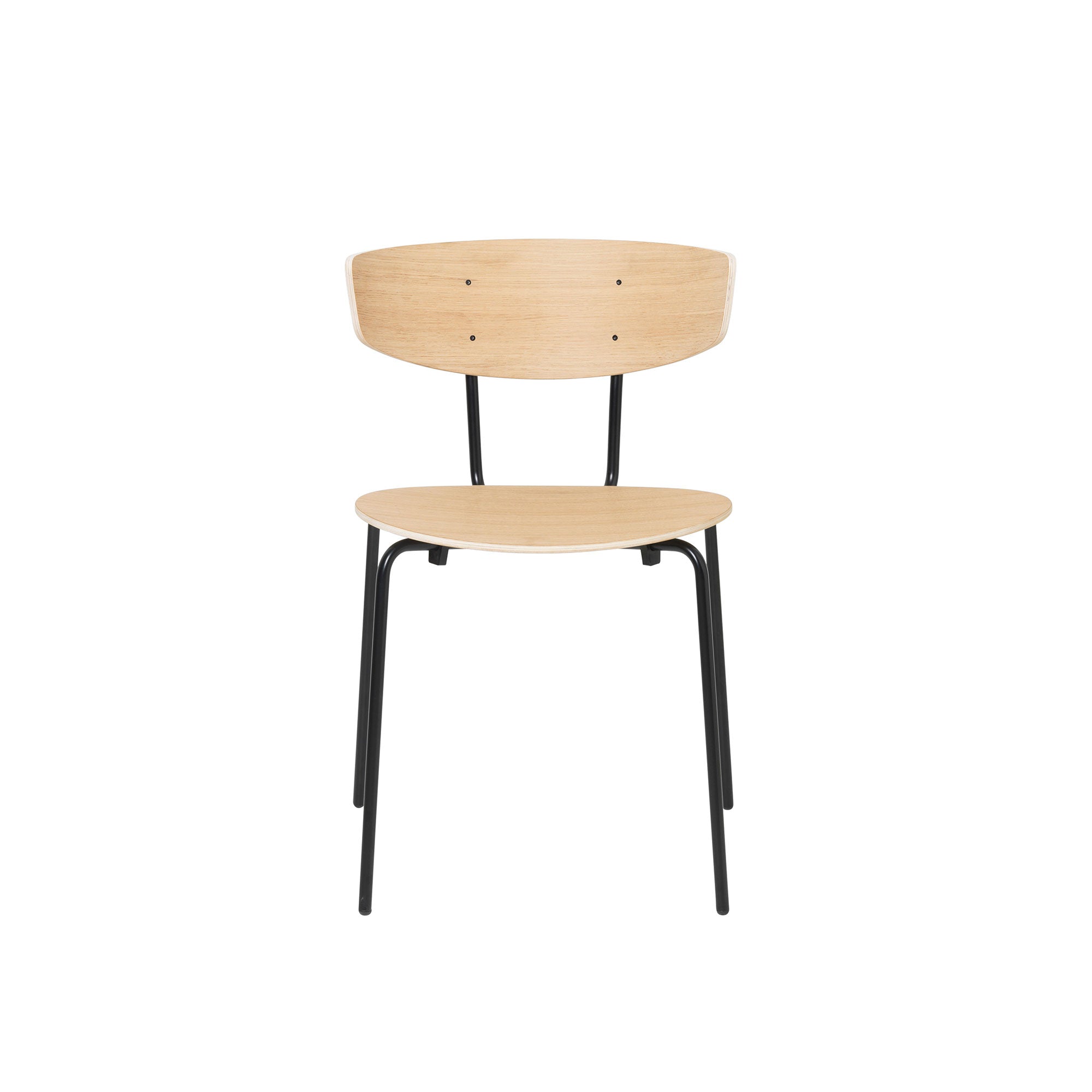 The Herman Dining Chair is elegant, well designed and comfortable enough to hold you for hours and hours. Made from FSC™-certified wood veneer and powder coated steel, the chairs are easily stacked and the broad, curved backrest provides plenty of back support and can also be used to rest your arms. As a nicely added detail, the angles of the wooden backrests are designed so that the chairs can hang from a table. This way, you can easily clean underneath the table and the chairs won’t take up space when you don’t need them.