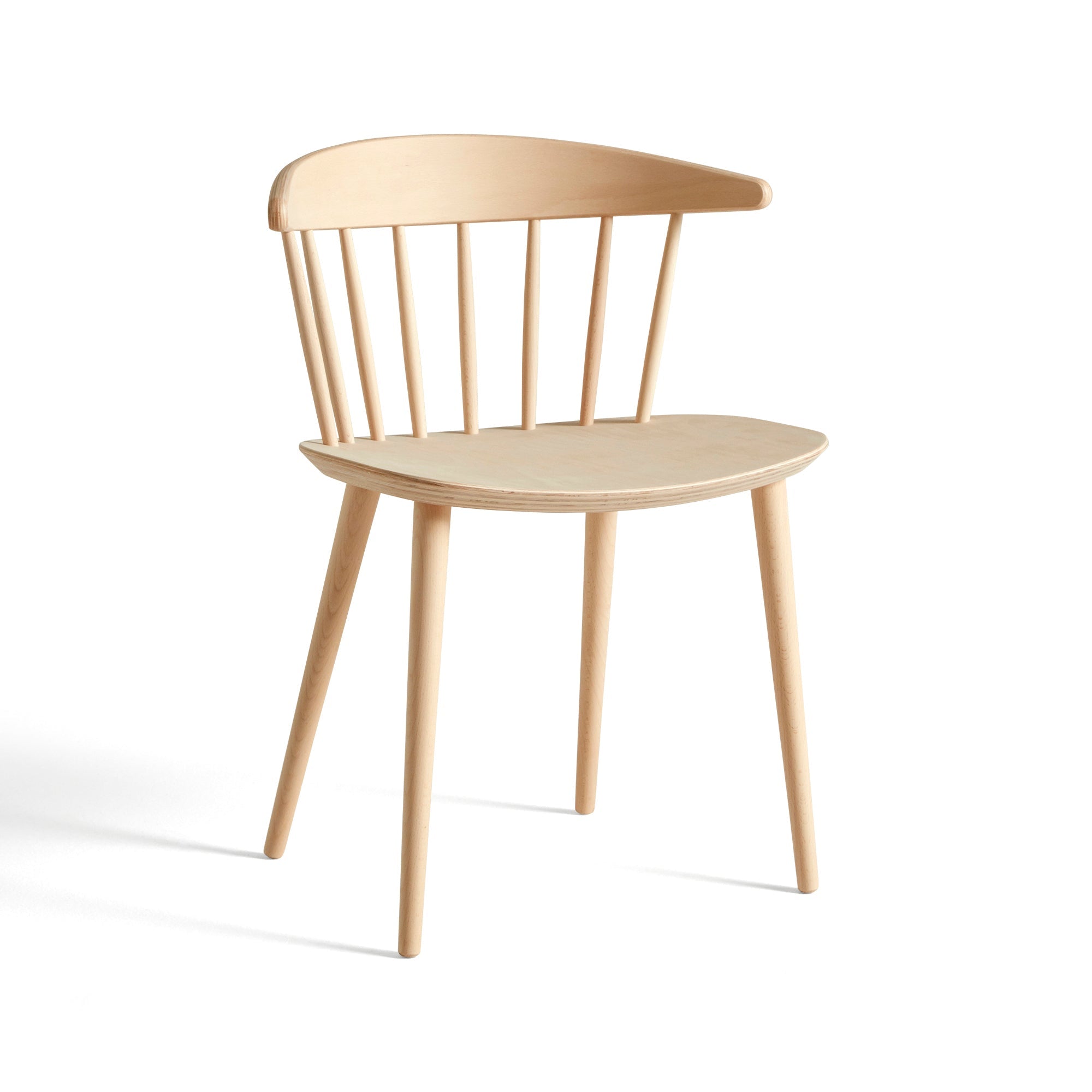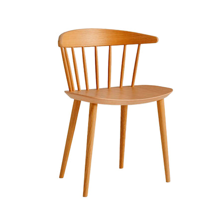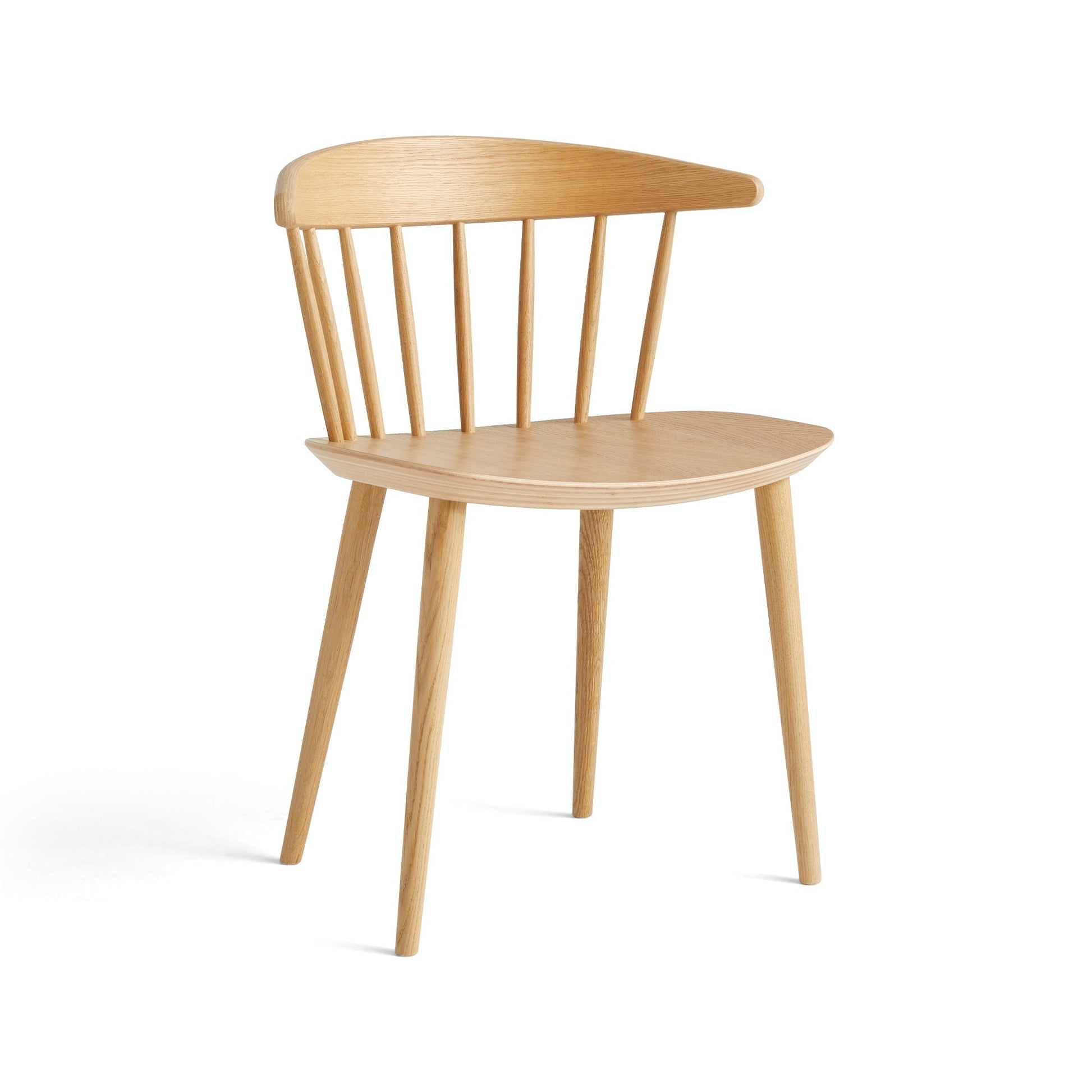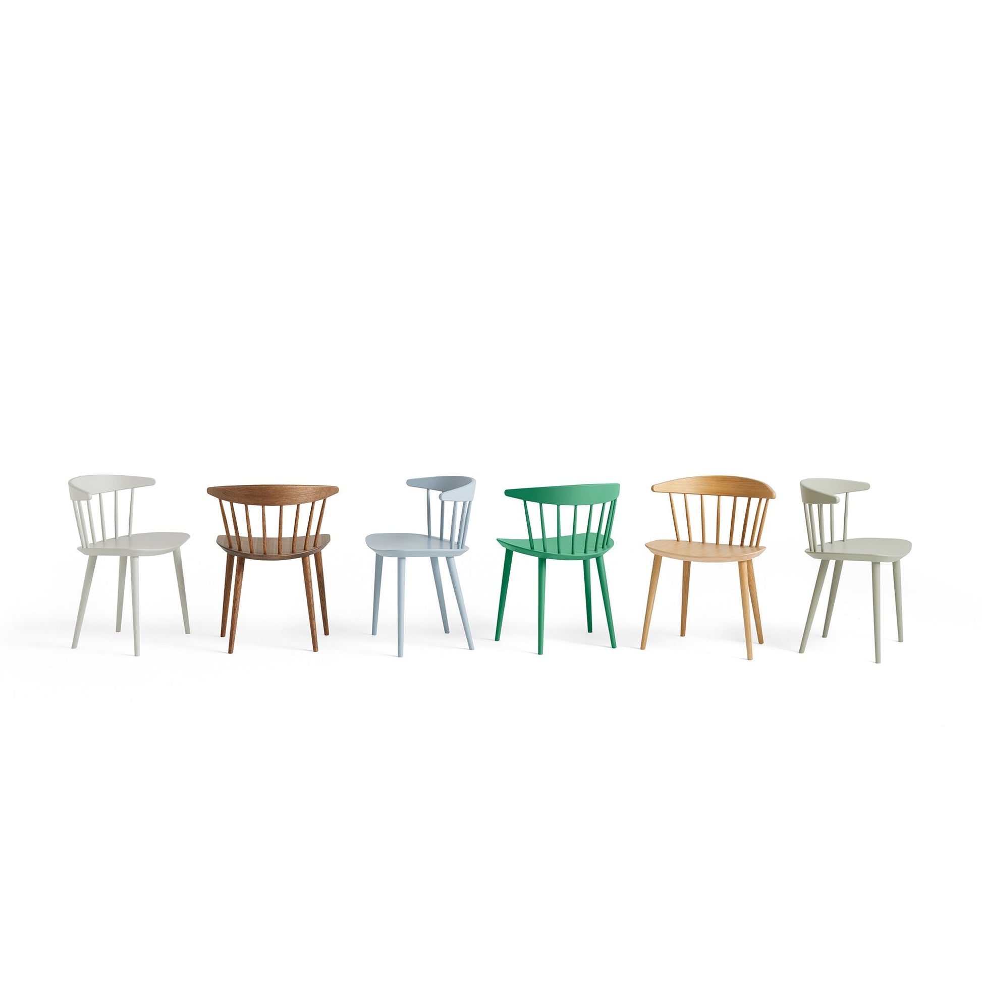 With its wide back and seat combined with the light, vertical graphic expression, J104 resembles a cross between a dining chair and an easy chair. In this unique composition, although the broad seat takes up visual space, the spindle structure of the back lightens the overall impression and makes J104 a sculptural classic.