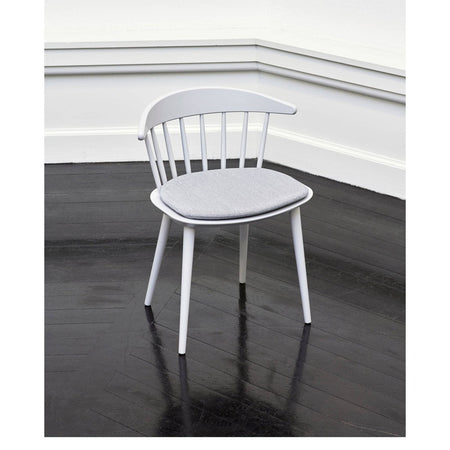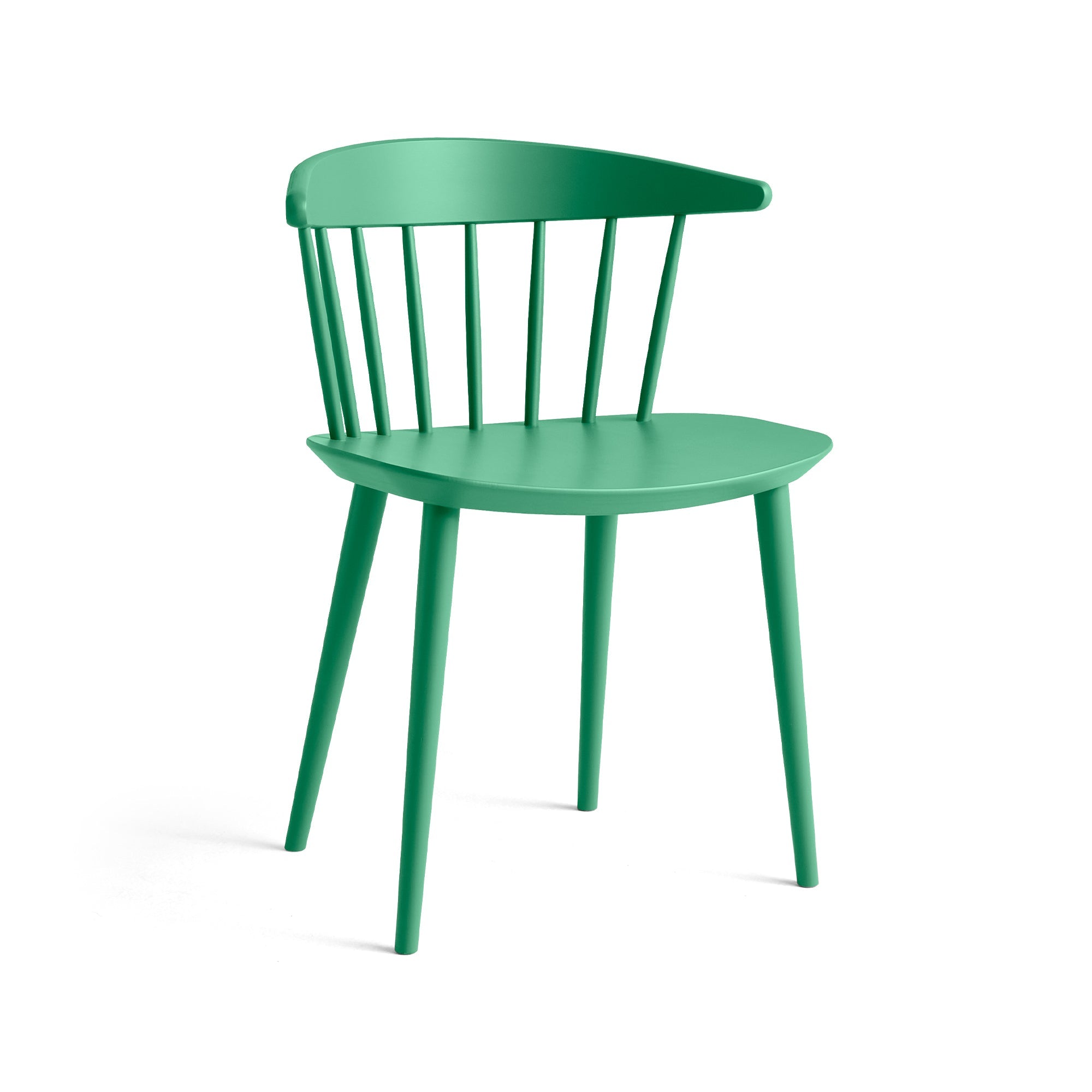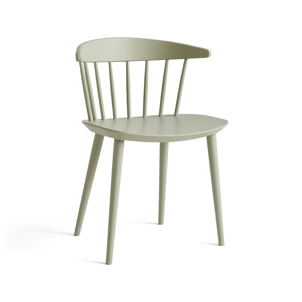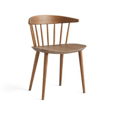 With its wide back and seat combined with the light, vertical graphic expression, J104 resembles a cross between a dining chair and an easy chair. In this unique composition, although the broad seat takes up visual space, the spindle structure of the back lightens the overall impression and makes J104 a sculptural classic.