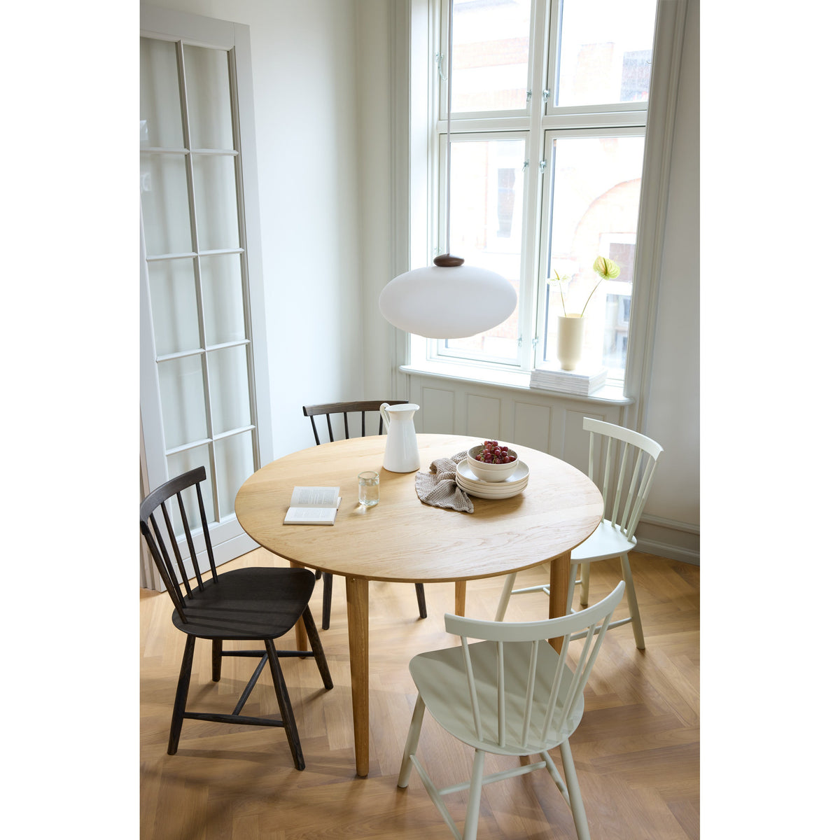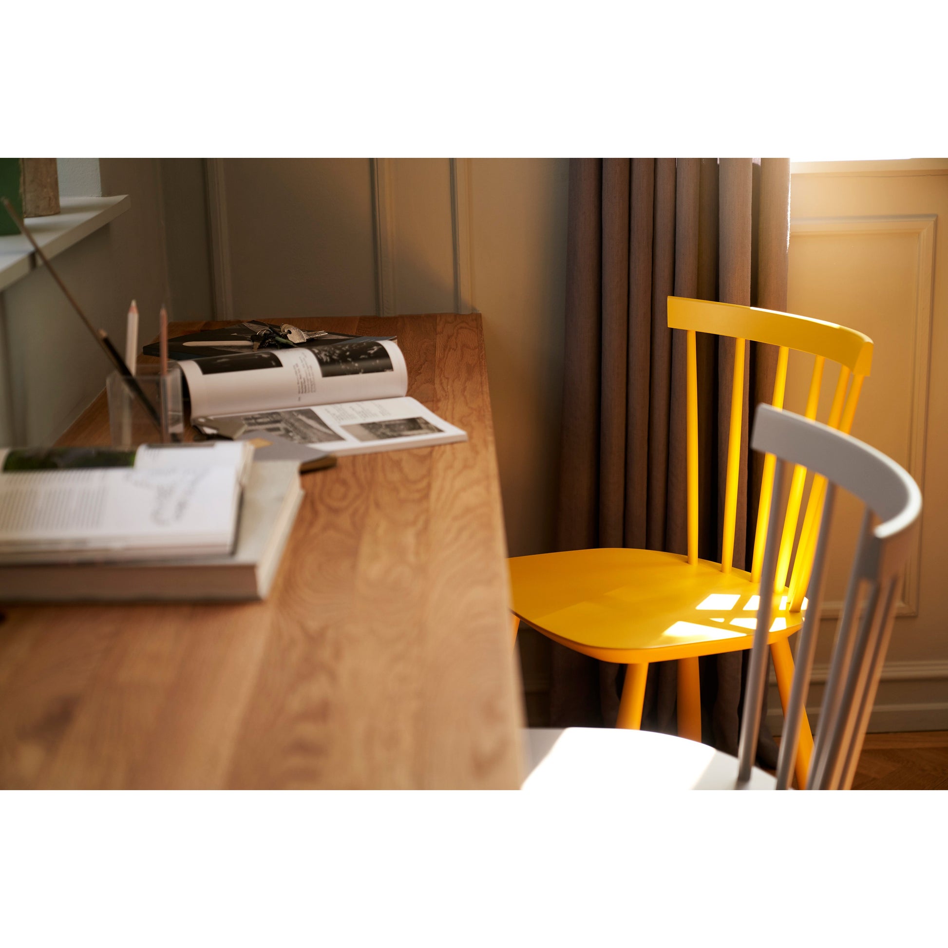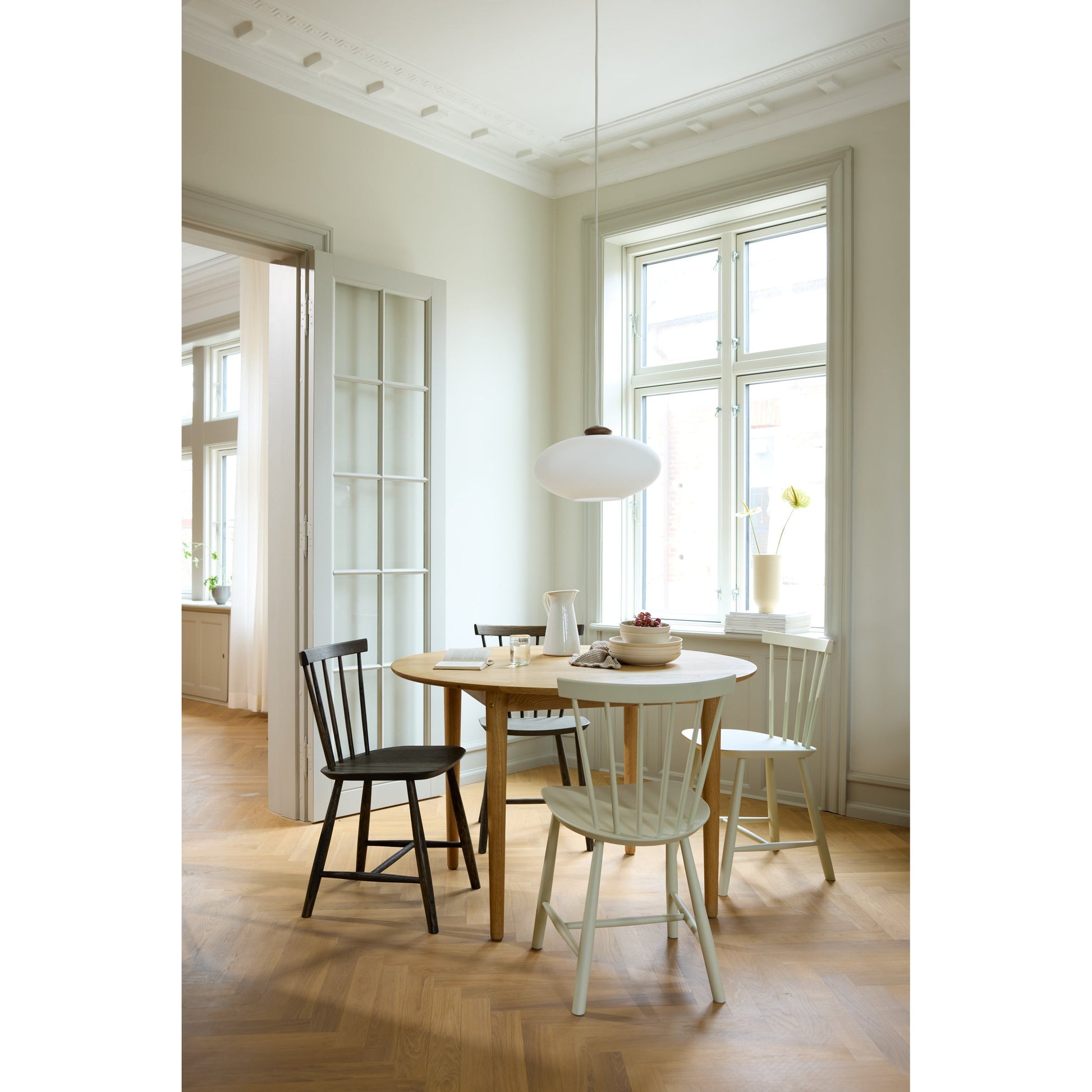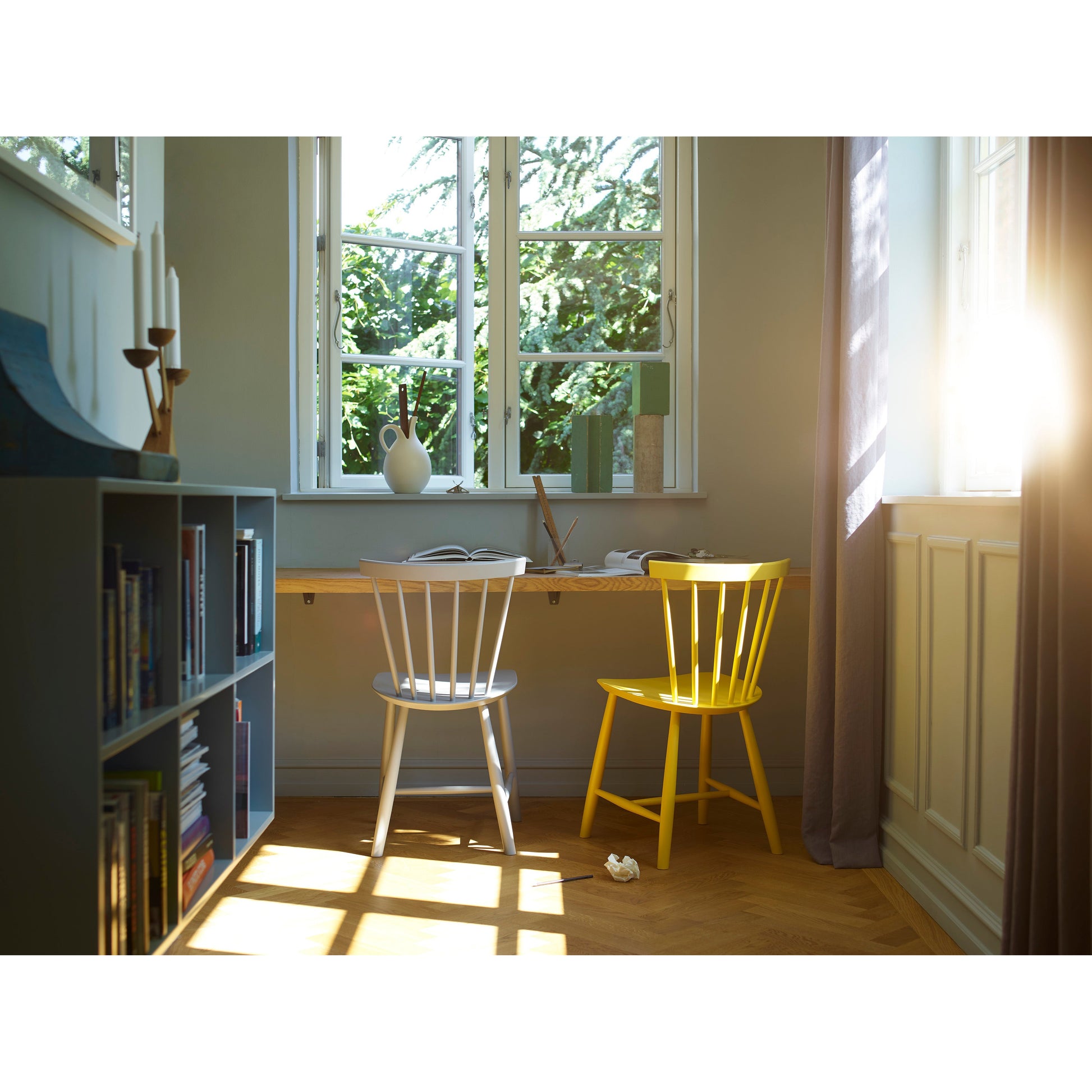 Therefore, the J46 quickly found its place in many Danish homes. In the 1970’s the chair was made available in a large range of vivid colours. Furthermore, it can be enhanced with a seat cushion, adding further comfort.
