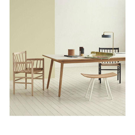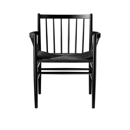 The gorgeous J81 dining chair was designed by Jørgen Bækmark in 1963. The chair has a high back that gently bows for a more comfortable seating experience. The paper cord seat is woven around an oak or beech frame.